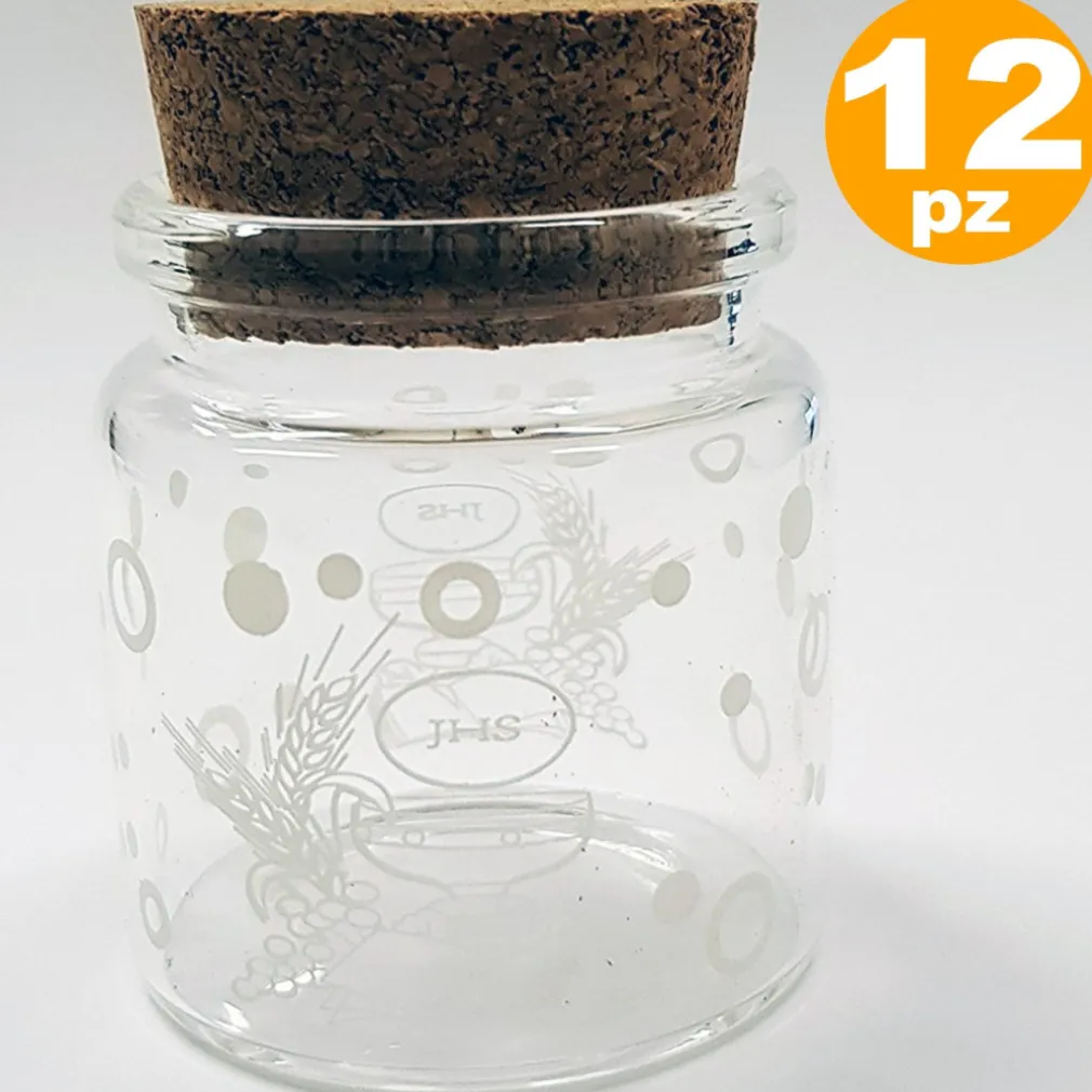12 BOMBONIERA BOMBONIERE ampolla comunione 5x5CM IN VETRO TAPPO SUGHERO EUCARESTIA CALICE BIANCO PORTACONFETTI CONFETTI.
