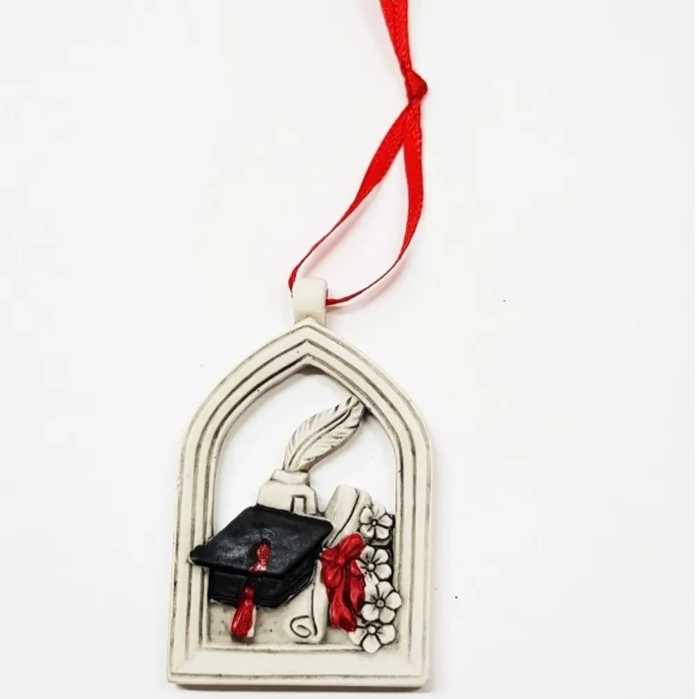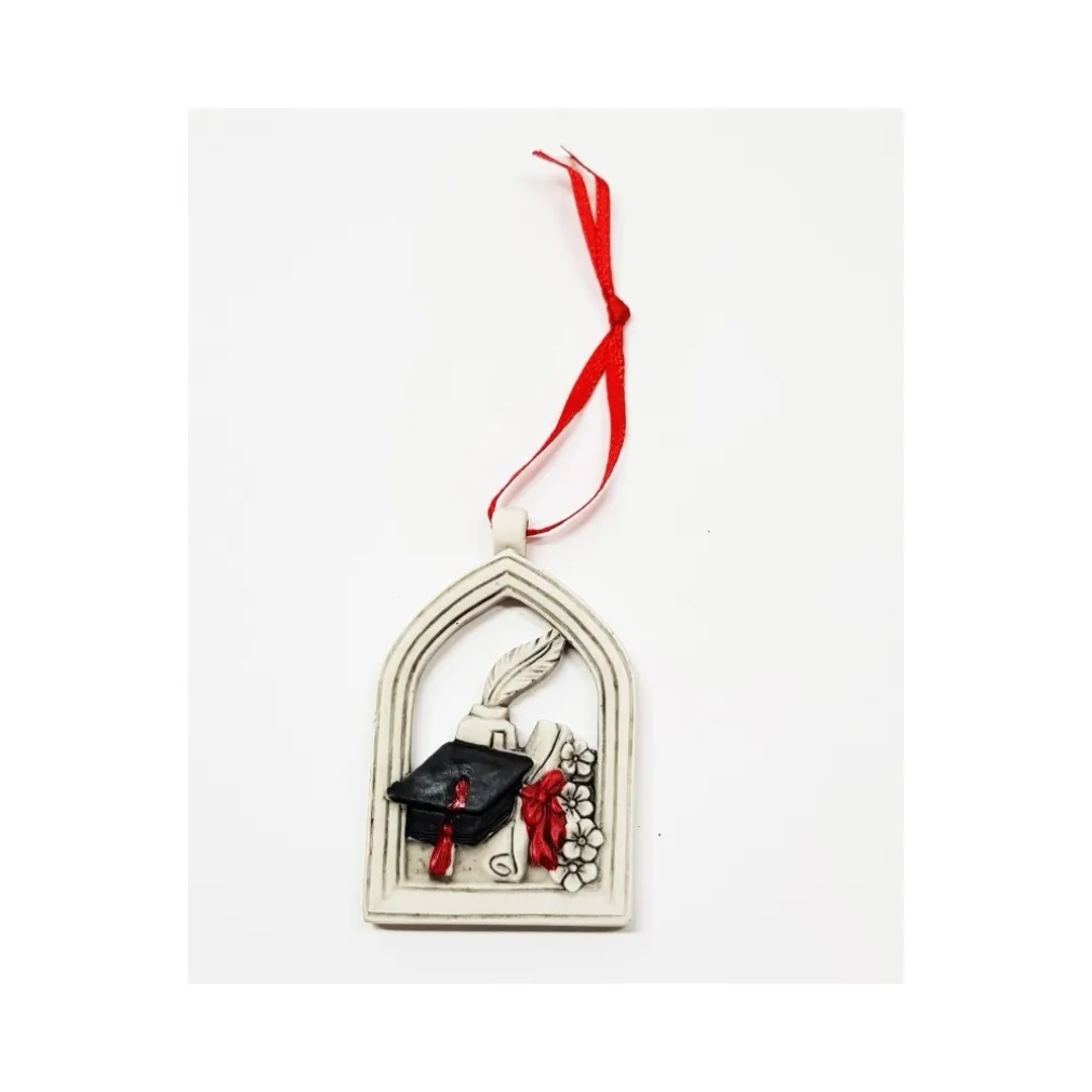 SET 12 PEZZI BOMBONIERA BOMBONIERE PERGAMENA ARCO LAUREA SIMBOLO CAPPELLO PIUMA CALAMAIO FORTUNA ROSSO BIANCO CERAMICA APPENDINO.