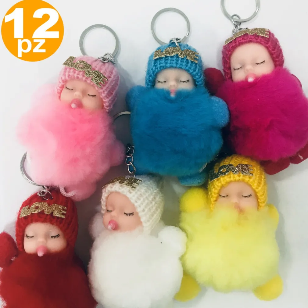 Cosa Include la Confezione? La confezione include 12 adorabili portachiavi neonato, con 2 pezzi in ogni colore: bianco, giallo, azzurro, rosa, fucsia e rosso.