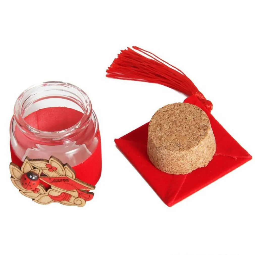 - Design Unico: Ogni bomboniera è decorata con un elegante tocco rosso e una coccinella portafortuna, simboli di successo e buona sorte.