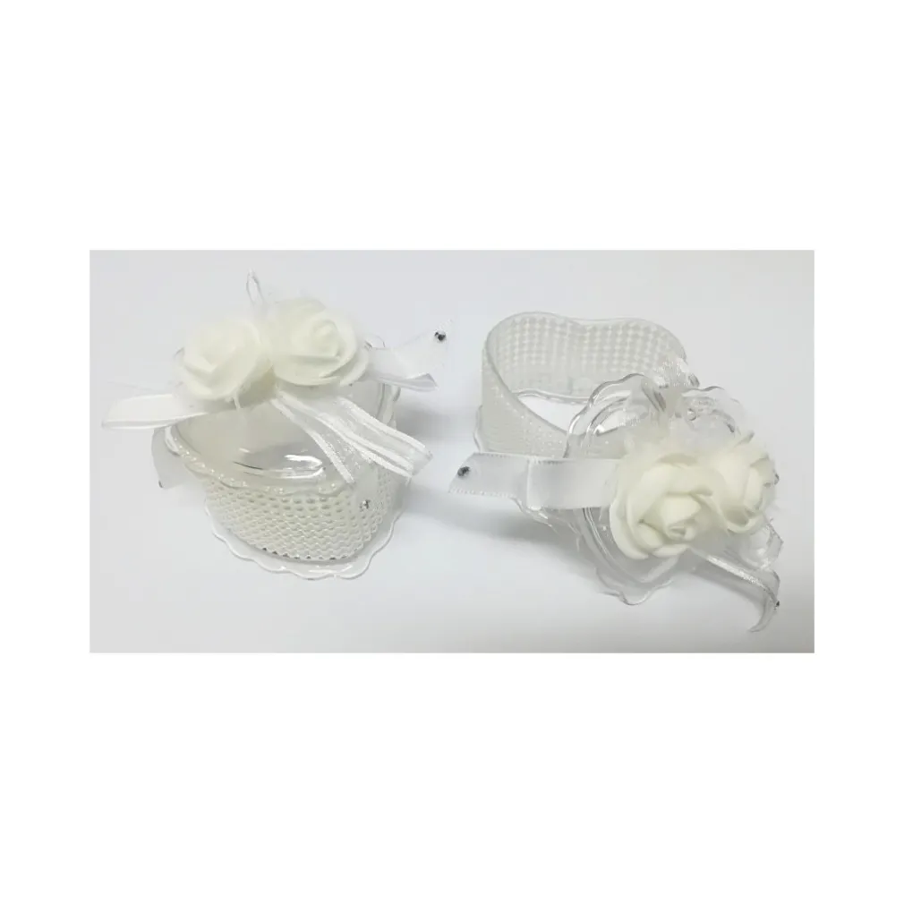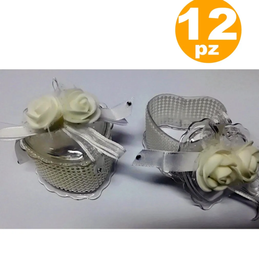 SET 12 PEZZI BOMBONIERA BOMBONIERE SCATOLA CUORE ROSA BIANCA PERLE 6x7x4.5CM PLEXIGLASS PORTACONFETTI PORTA CONFETTI MATRIMONIO