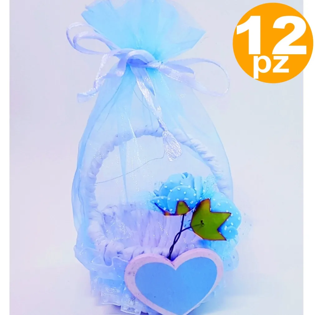 Bomboniere Cestino Azzurro Cuore Sacchetto Organza | Perfette per Nascita e Battesimo