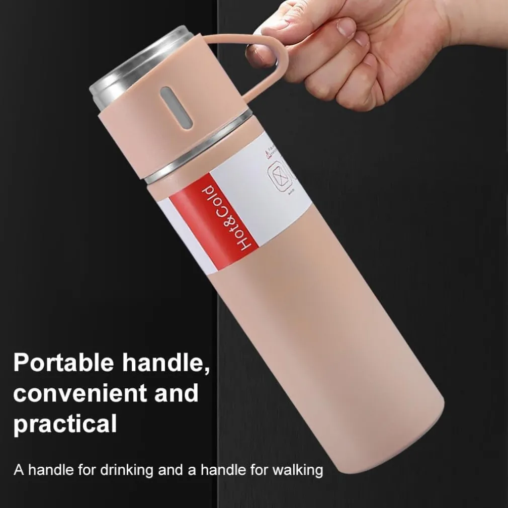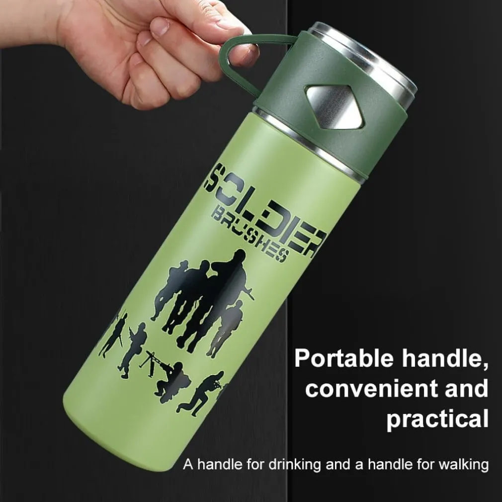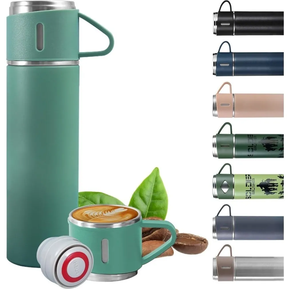BORRACCIA TERMICA 500ML IN ACCIAIO INOX CON TAZZA MANICO PER BEVANDE CALDE FREDDE