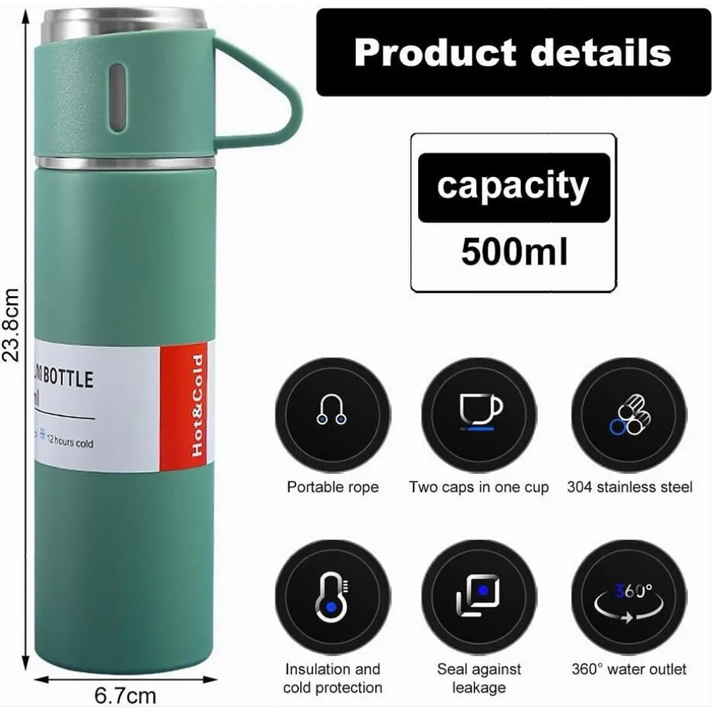 La borraccia termica da 500 ml è un accessorio imprescindibile per chi desidera mantenere le proprie bevande calde o fredde in qualsiasi situazione. Realizzata in acciaio inossidabile alimentare 304 di alta qualità, questa bottiglia termica garantisce sicurezza e durata per le tue bevande preferite.