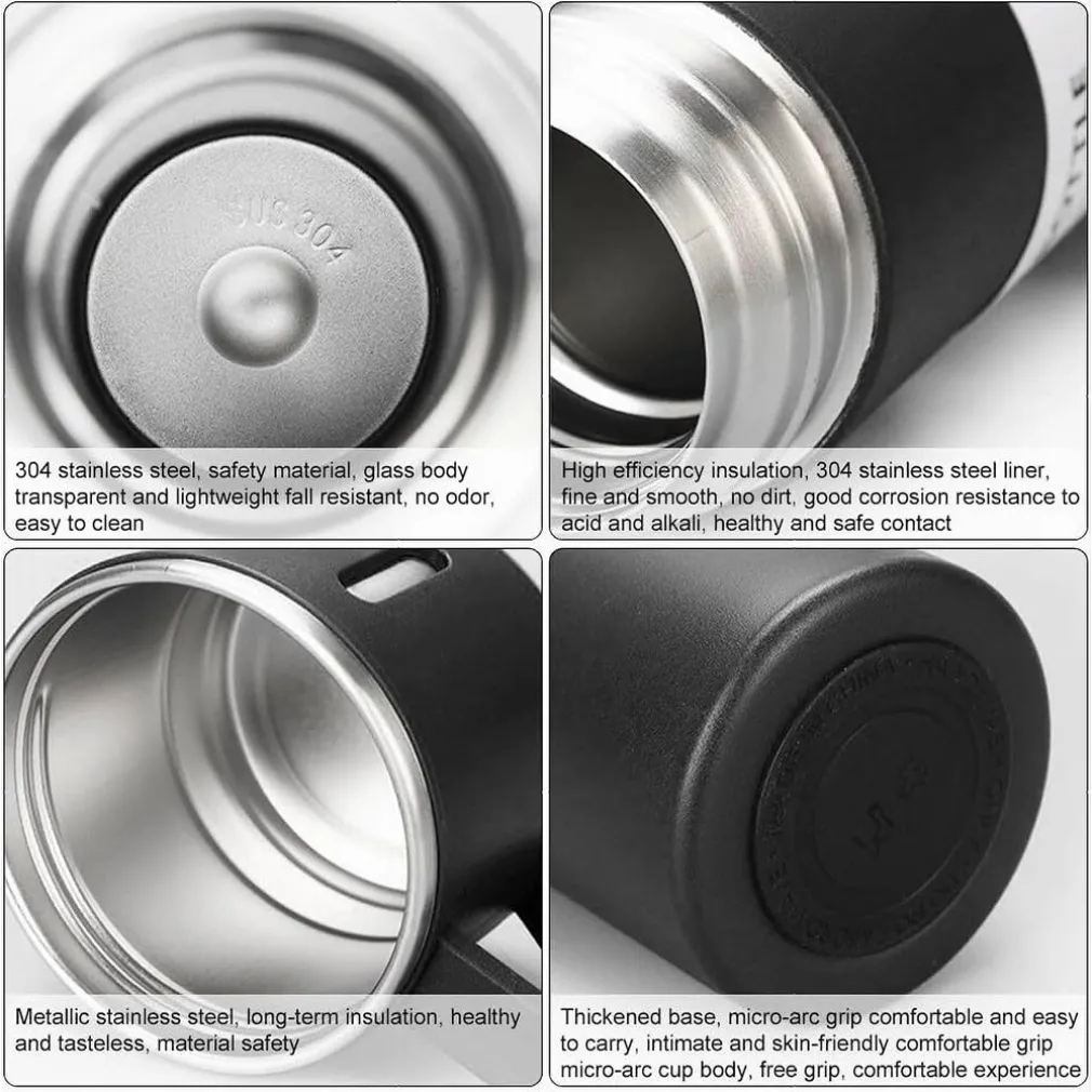 Dotata di una pratica tazza e di un manico, questa borraccia termica offre un’elevata versatilità e portabilità. Perfetta per il trasporto di caffè, tè, acqua o qualsiasi altra bevanda durante viaggi, attività all’aperto, giornate in ufficio o a scuola.