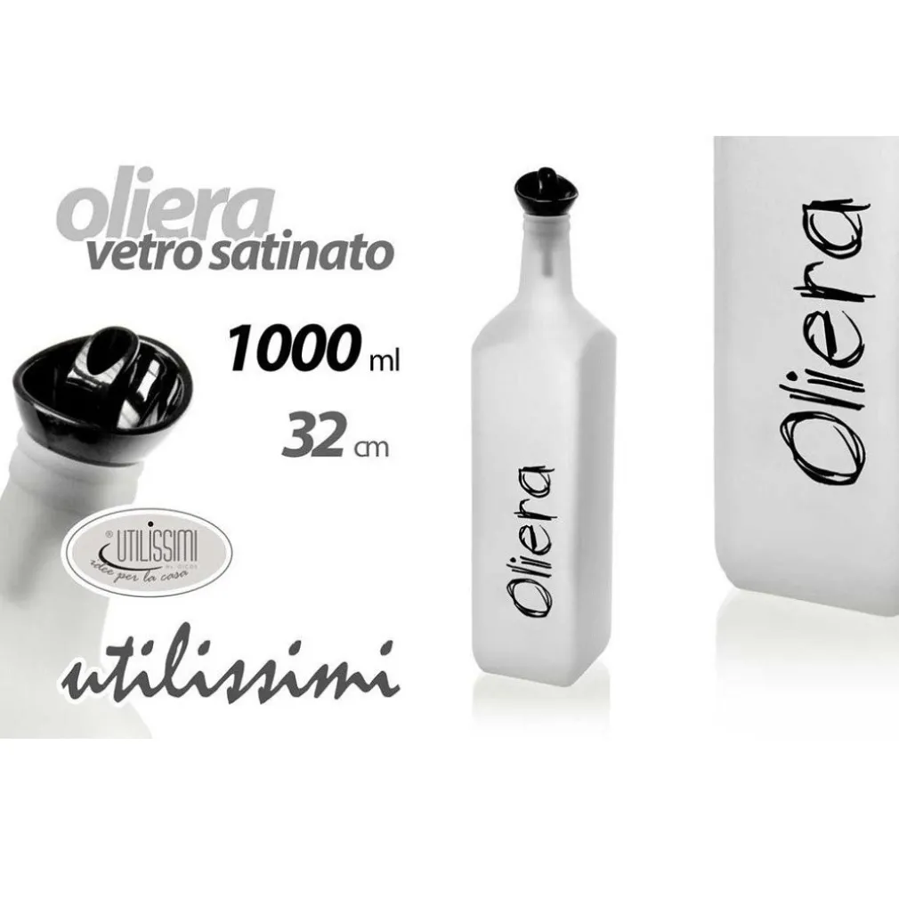 BOTTIGLIA SCRITTA OLIERA VETRO SATINATO BIANCO TAPPO DOSATORE 1000ML 32CM 833328-Oliera vetro in satinato con tappo dosatore bottiglia