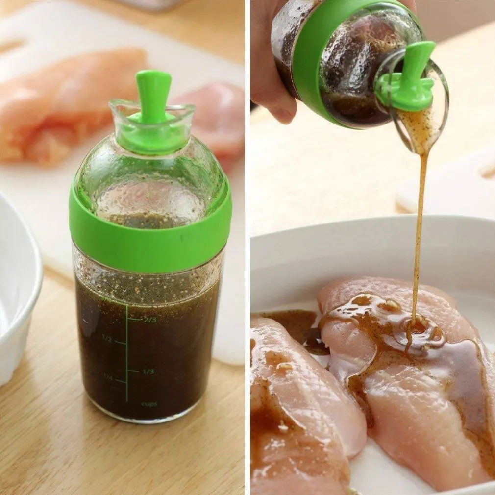 L’ampia apertura del condimento per insalate ospita una vasta gamma di ingredienti, tenuta ermetica, a tenuta stagna, a tenuta stagna Consente una facile pulizia e l’aggiunta rapida di ingredienti senza causare problemi Ideale per preparare condimenti per insalate, salse da dessert e altri condimenti liquidi con poco sforzo, mescolando, servendo e conservando condimenti, salse e marinate. La leva di apertura / chiusura con una mano si sposta indietro per versare e in avanti per sigillare. Shaker per condimenti per insalate ti aiuta a mescolare, servire e salvare le tue creazioni per condire insalate. ♦ Capacità: – 200 ml, senza BPA e lavabile in lavastoviglie