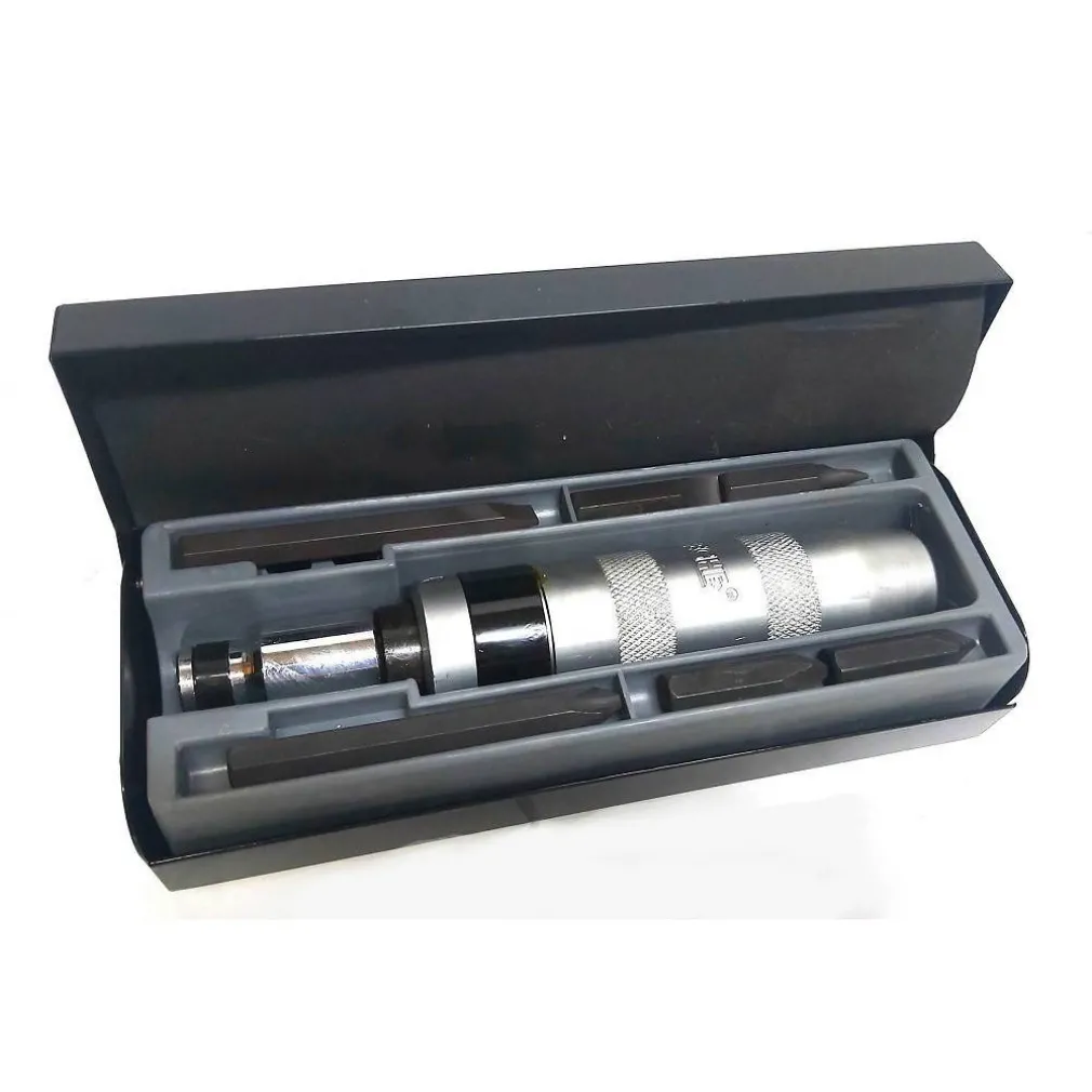 Nuovissimo set di cacciavite a percussione o ad impatto reversibile. Cacciavite per rimuovere viti strette e difficili da svitare semplicemente inserendo l’inserto giusto e battendo con un martello.