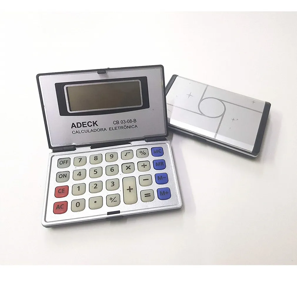 CALCOLATRICE RICHIUDIBILE GRIGIA TASCABILE PORTATILE 8 CIFRE DISPLAY ARITMETICA PER SCUOLA UFFICIO.