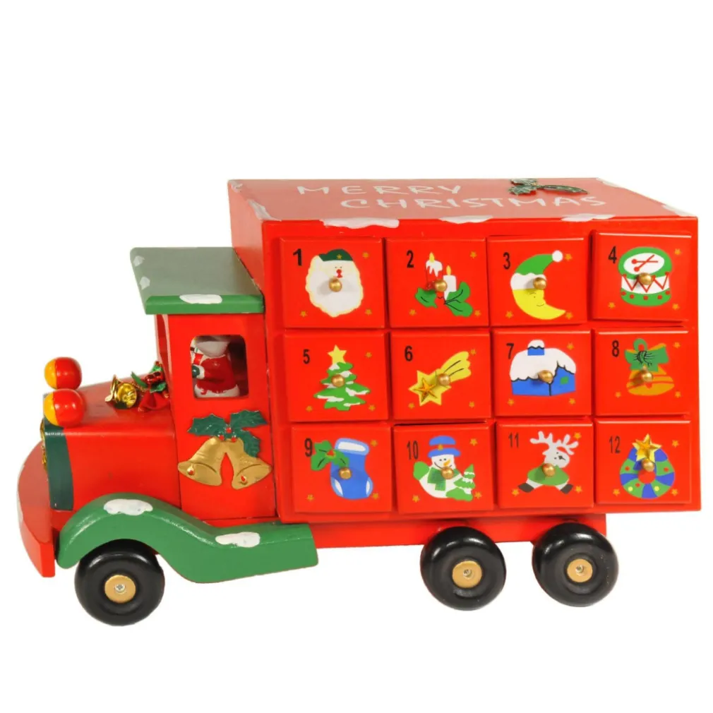 Aspetta la magia del Natale con questo bellissimo calendario dell’avvento a forma di furgoncino. Il calendario è formato da una serie di cassetti numerati per contare i giorni mancanti al Natale dove e possibile inserire decorazioni e dolci sorprese da poter scoprire con il passare dei giorni. Realizzato interamente in legno di altissima qualità curato in ogni dettaglio questo bellissimo calendario renderà l’attesa per il natale davvero magica. Il natale sarà davvero speciale con questo bellissimo calendario dell’avvento.