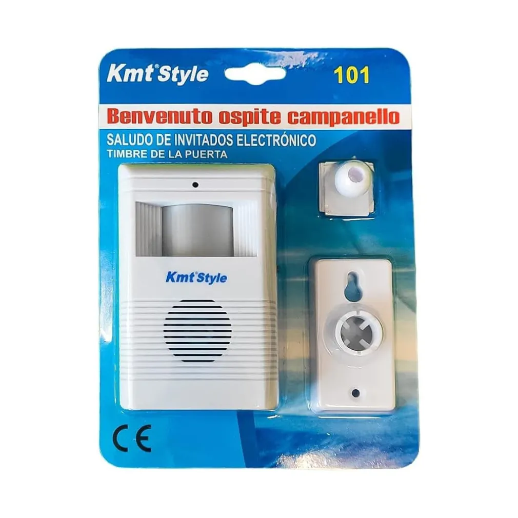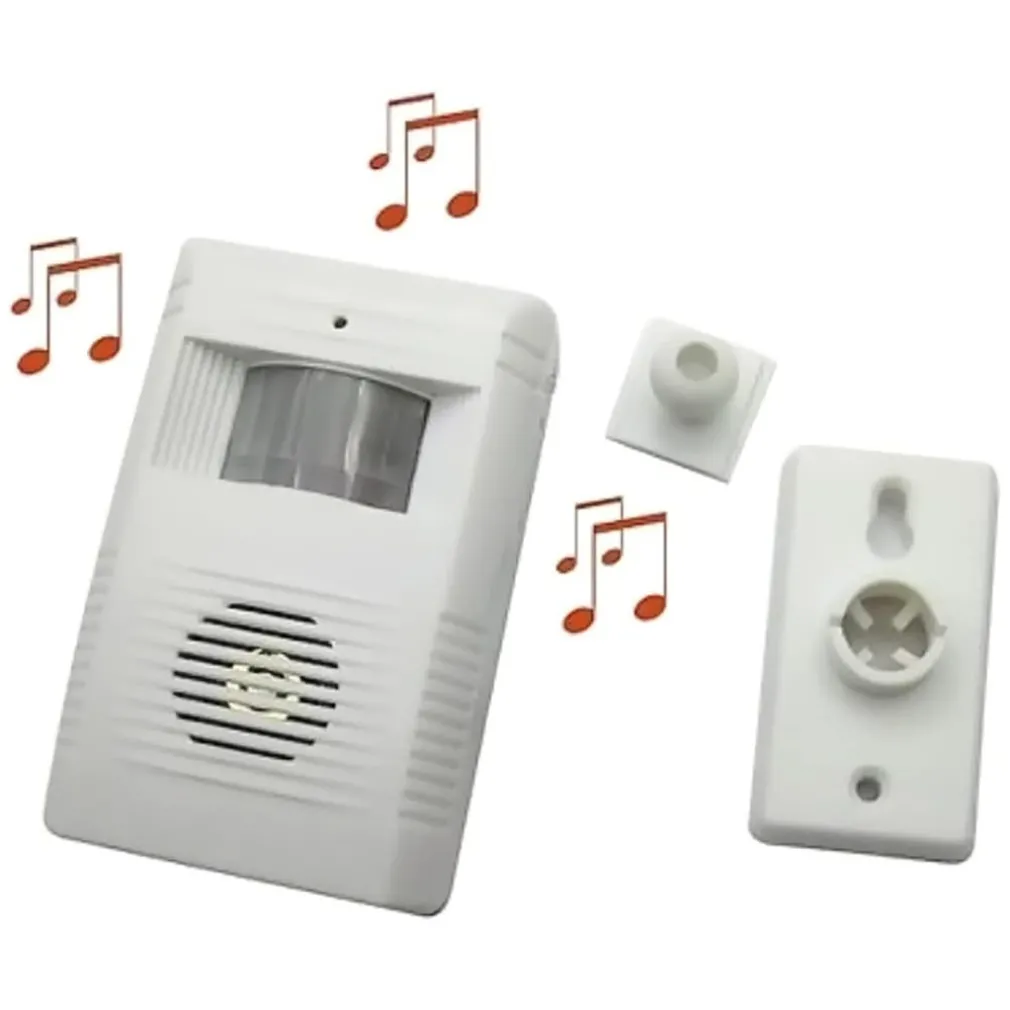 Questo campanello emette un segnale sonoro quando una persona o un oggetto passa nel suo raggio di azione. Può essere installato senza effettuare attacchi elettrici . Questo campanello, infatti, emetterà automaticamente una delle 10 melodie musicali scelta, al passaggio di una persona (o di un oggetto) entro circa 4 metri dalla sua cellula. Si alimenta con 3 comunissime batterie stilo da 1,5v tipo AA(non incluse). Il campanello è dotato di tasto per poter scegliere la melodia desiderata (ve ne sono 10). Il campanello è alimentato a batterie. Sono inclusi la staffa per il fissaggio a parete.