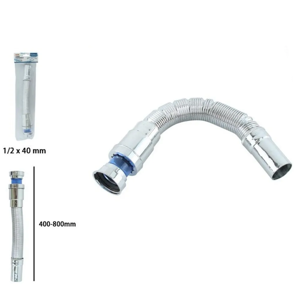 Canotto Tubo Scarico Flessibile Estensibile Lavabo Lavello 400-800mm 1/2 10073