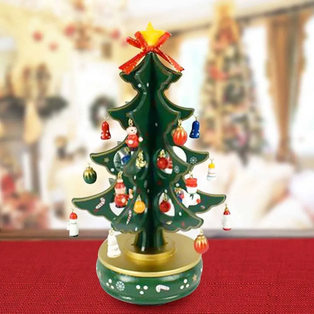 - 1 x Carillon Natalizio Albero di Natale Legno con Addobbi 29cm Decorazioni Natalizie