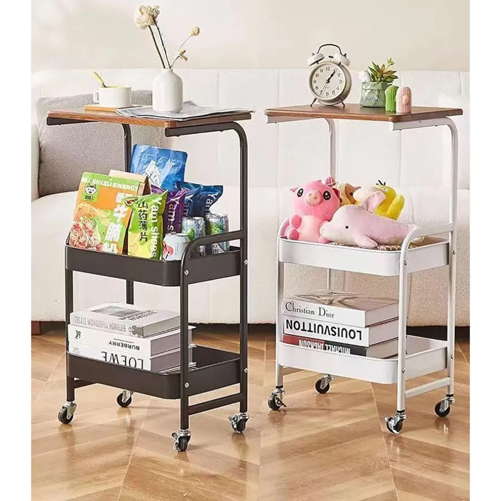 CARRELLO PORTAOGGETTI A 3 LIVELLI SCAFFALE MOBILE ORGANIZZATORE SCORREVOLE PIANO IN LEGNO