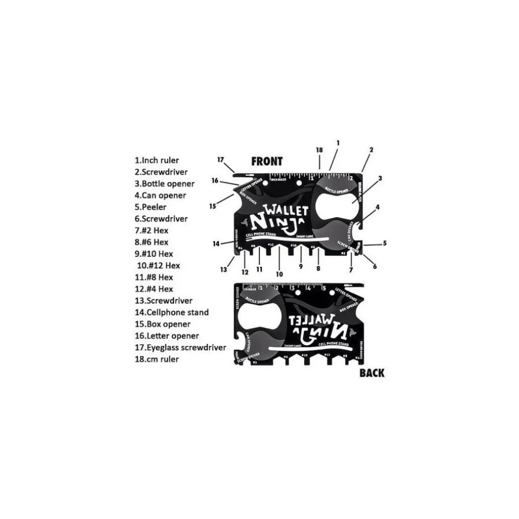 Benvenuti nel mondo della praticità e dell’ingegno con la nostra innovativa Carta di Credito Ninja 18in1, uno strumento multi-utilizzo che va oltre le aspettative. Questo gadget versatile è progettato per offrire una soluzione completa a molteplici esigenze quotidiane.