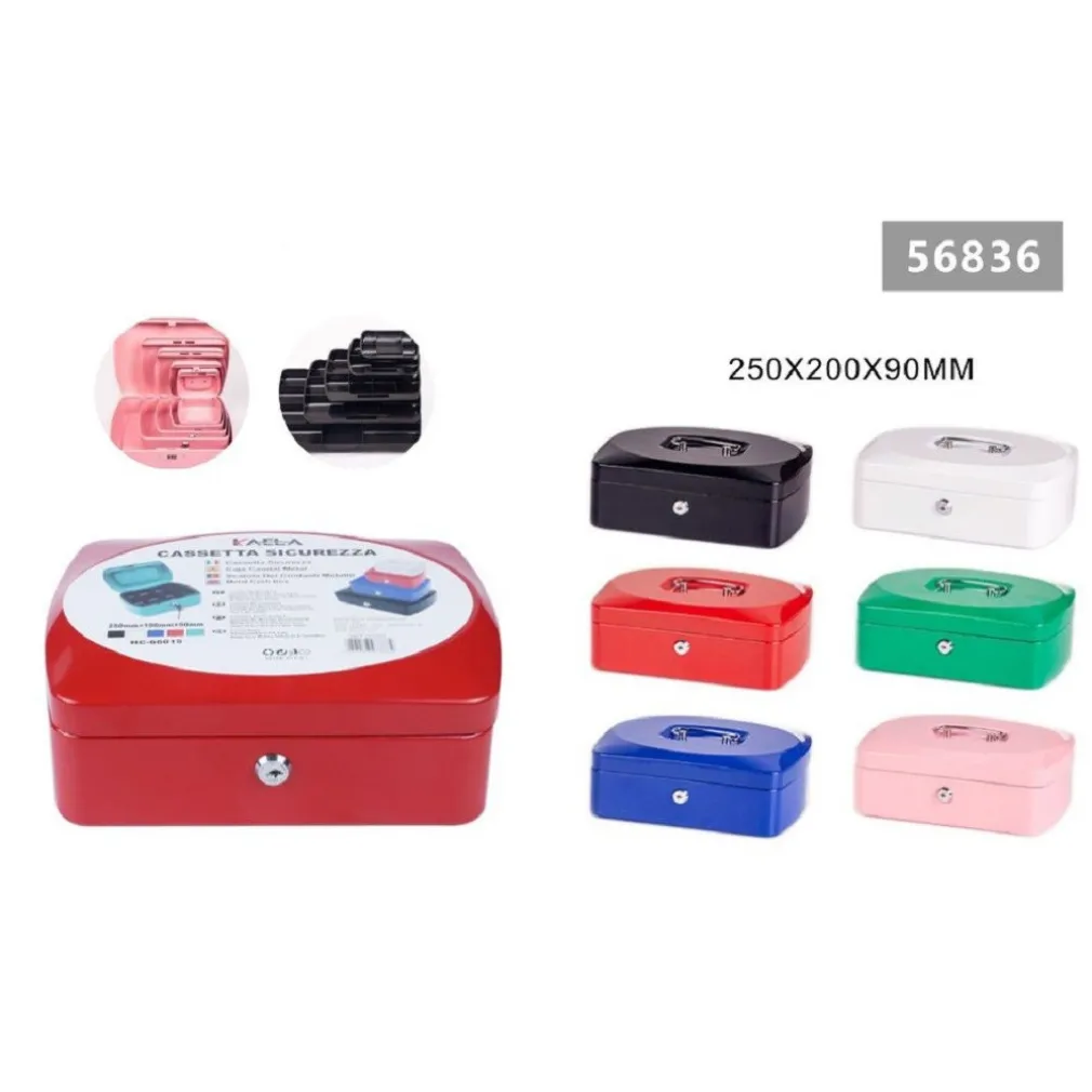 Cassetta portavalori con vassoio estraibile con divisorio portamonete utile per poter tenere sempre in ordine le monete e tenere nascosto sotto allo scomparto gli oggetti di valore. Dispone di una doppia chiave per aprire la cassaforte e di un manico per un trasporto pratico.