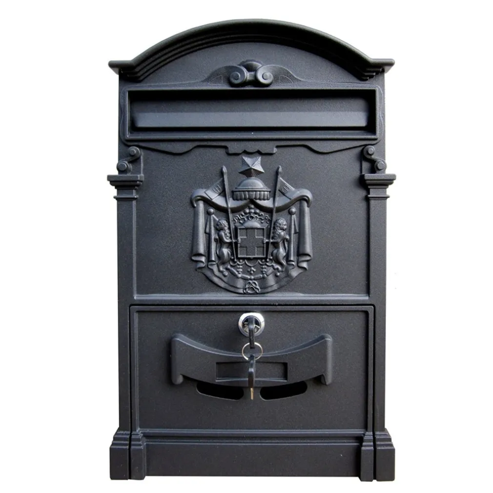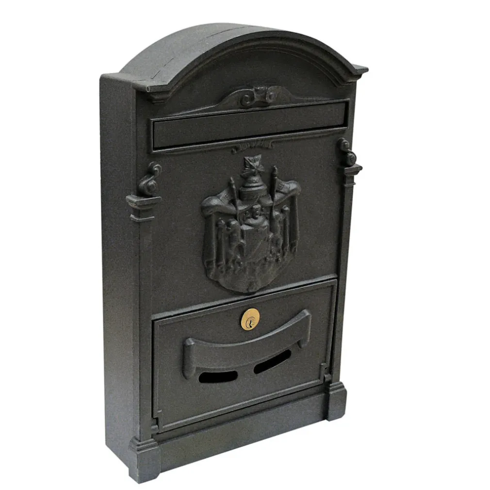 In alluminio pressofuso Con verniciatura a polevere. Adatta per uso esterno resistente agli agenti stmosferici Con sportellino buca basculante Presisposta di fori per il fissaggio a muro Con serratura a cilindro in Acciaio