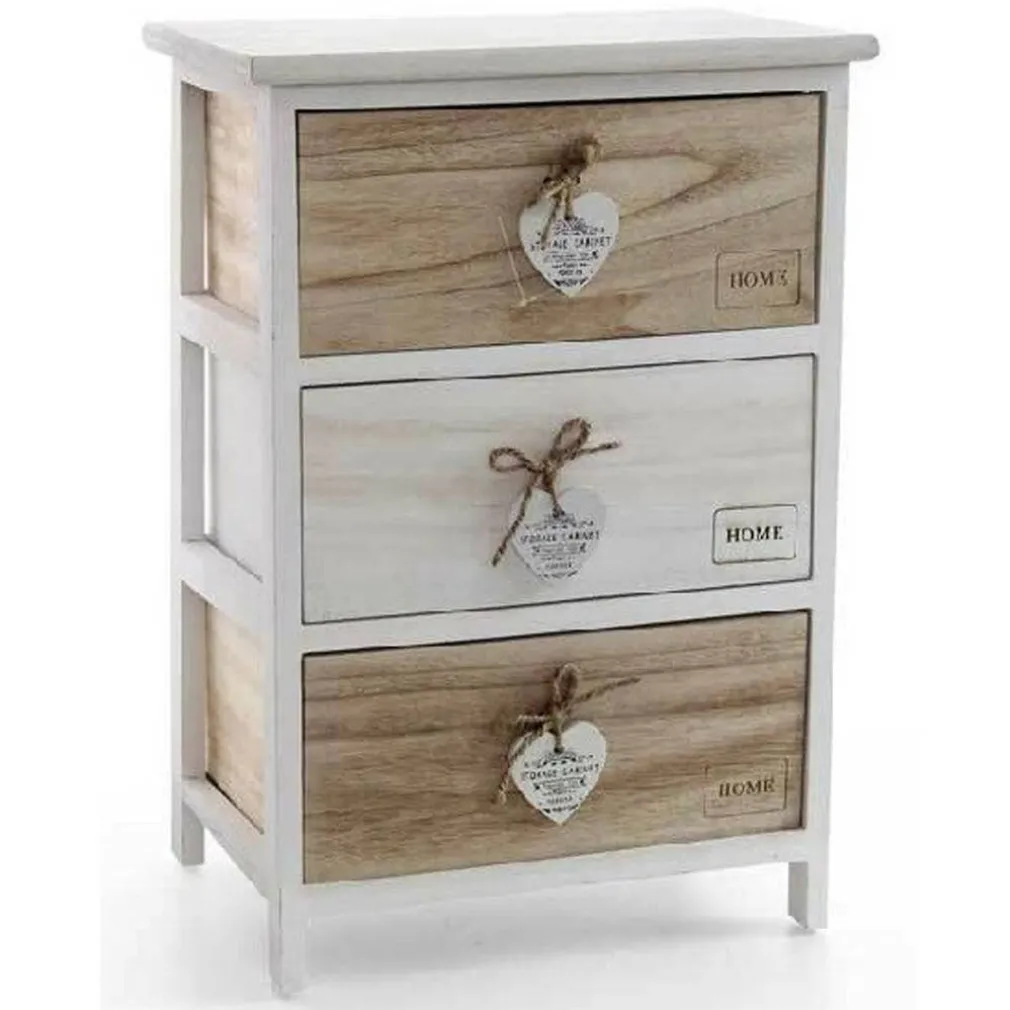 CASSETTIERA CON 3 CASSETTI 58X40X29CM CUORE BIANCO LEGNO NATURALE CASA MODERNO-CASSETTIERA 3 CASSETTI H 58X40X29CM DECO LEGNO NATURALE MODERNA EDT.