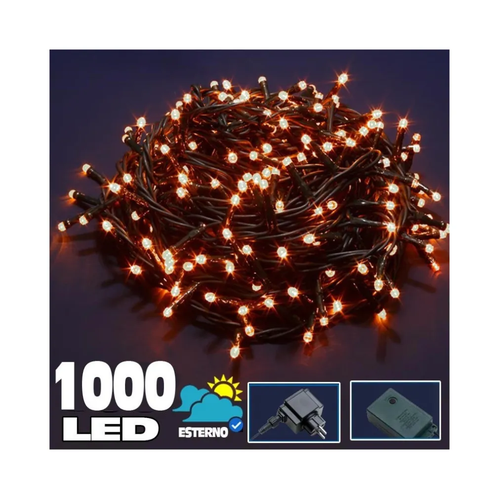 - 1 x Catena Luminosa 1000 Luci LED Lucciole Bianco Caldo con Controller 8 Funzioni per Interno ed Esterno 24V