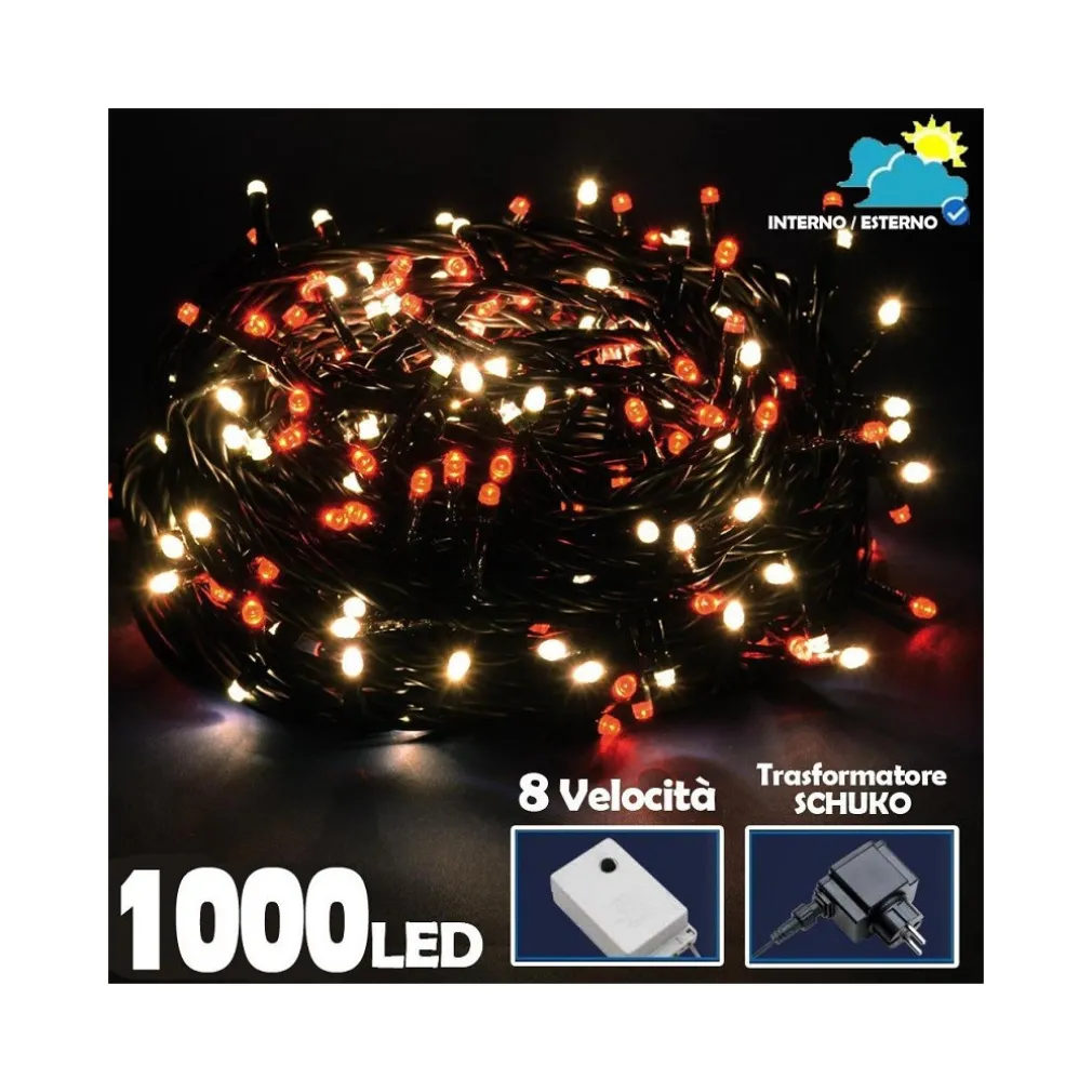- 1 x Catena Luminosa 1000 Luci LED Lucciole Bianco Caldo e Rosso con Controller 8 Funzioni per Interno ed Esterno 24V