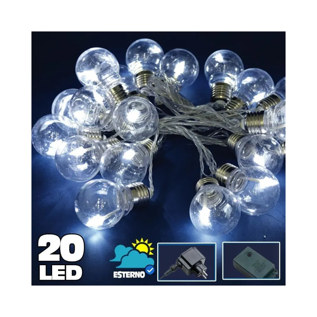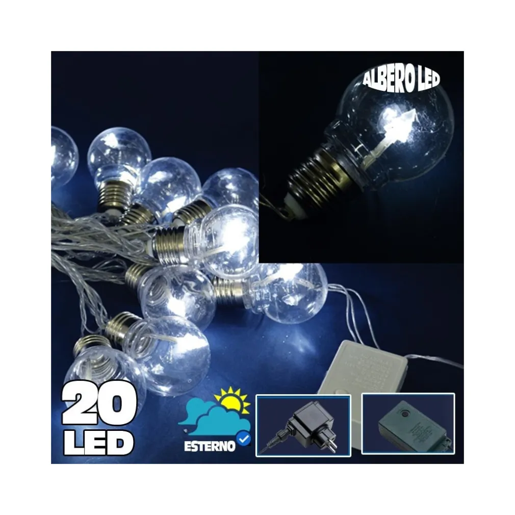 - 1 x Catena Luminosa 20 Bulbi forma Lampadina Trasparente a LED Bianco Freddo Albero