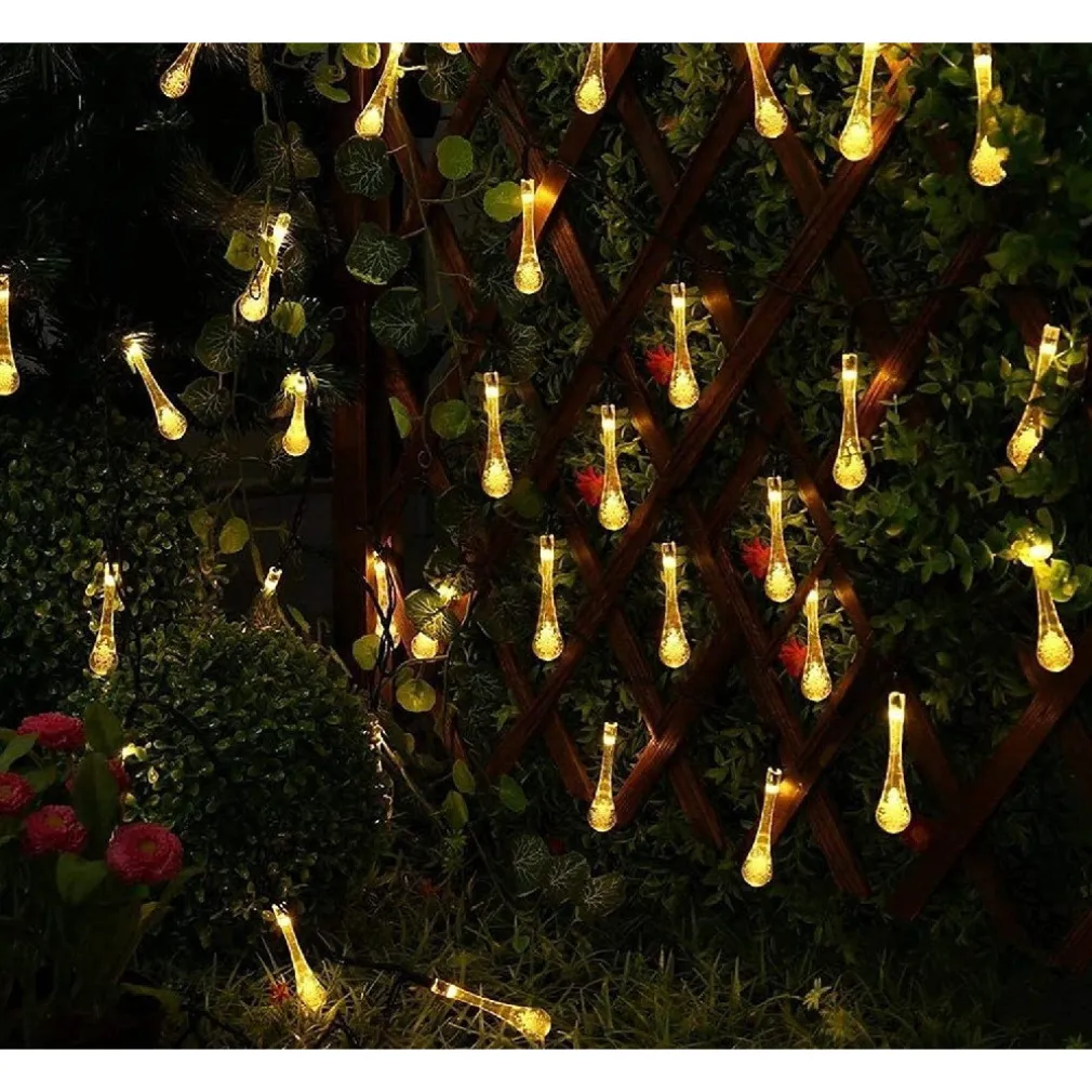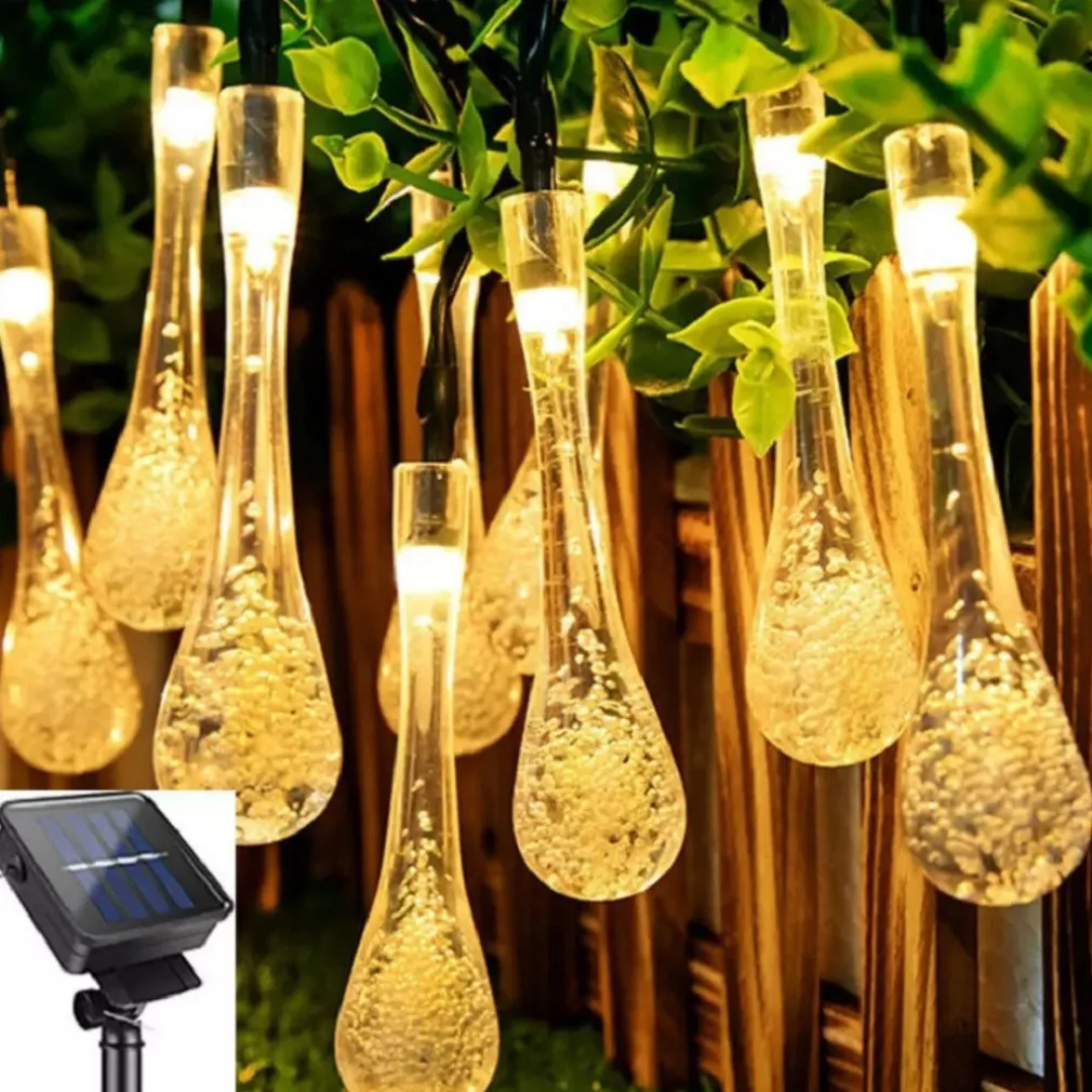 Catena Luci a LED luminosi a forma di goccia Natalizia con alimentazione con ricarica solare e con 8 Giochi Luce