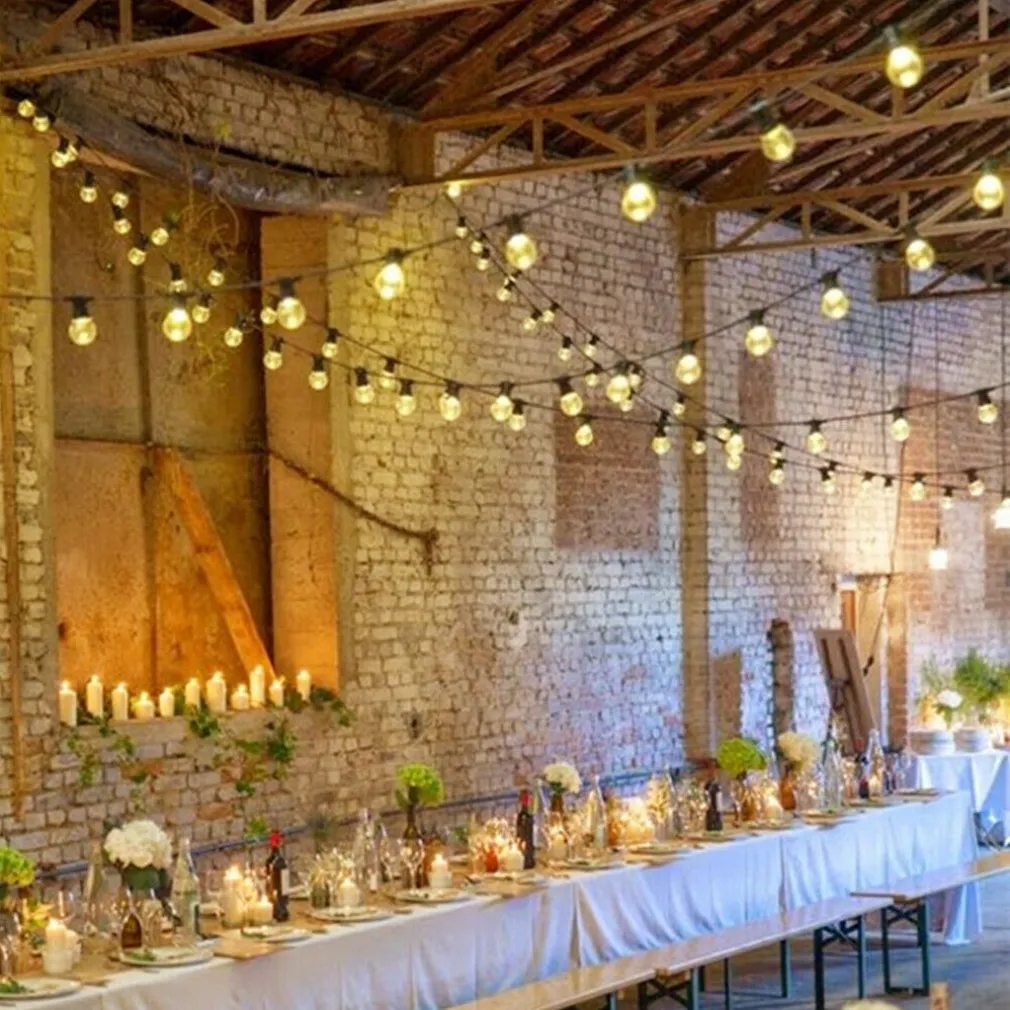 Illumina le tue serate con la catena luminosa a led ideale per feste in giardino, parti in terrazza e cene all’aperto. La catenaria è composta da 10 lampadine G50 a led filamento luce fredda, che rendono l’atmosfera calorosa, romantica e accogliente. La catena è lunga 5 metri ed ha un grado di protezione Ip44, cioè che può essere esposta all’aperto ed è resistente a schizzi di acqua, non resiste alle intemperie e non può essere immersa in acqua. Il led string light può essere usato anche come luci natalizie per decorare la vostra abitazione per le festività di natale.
