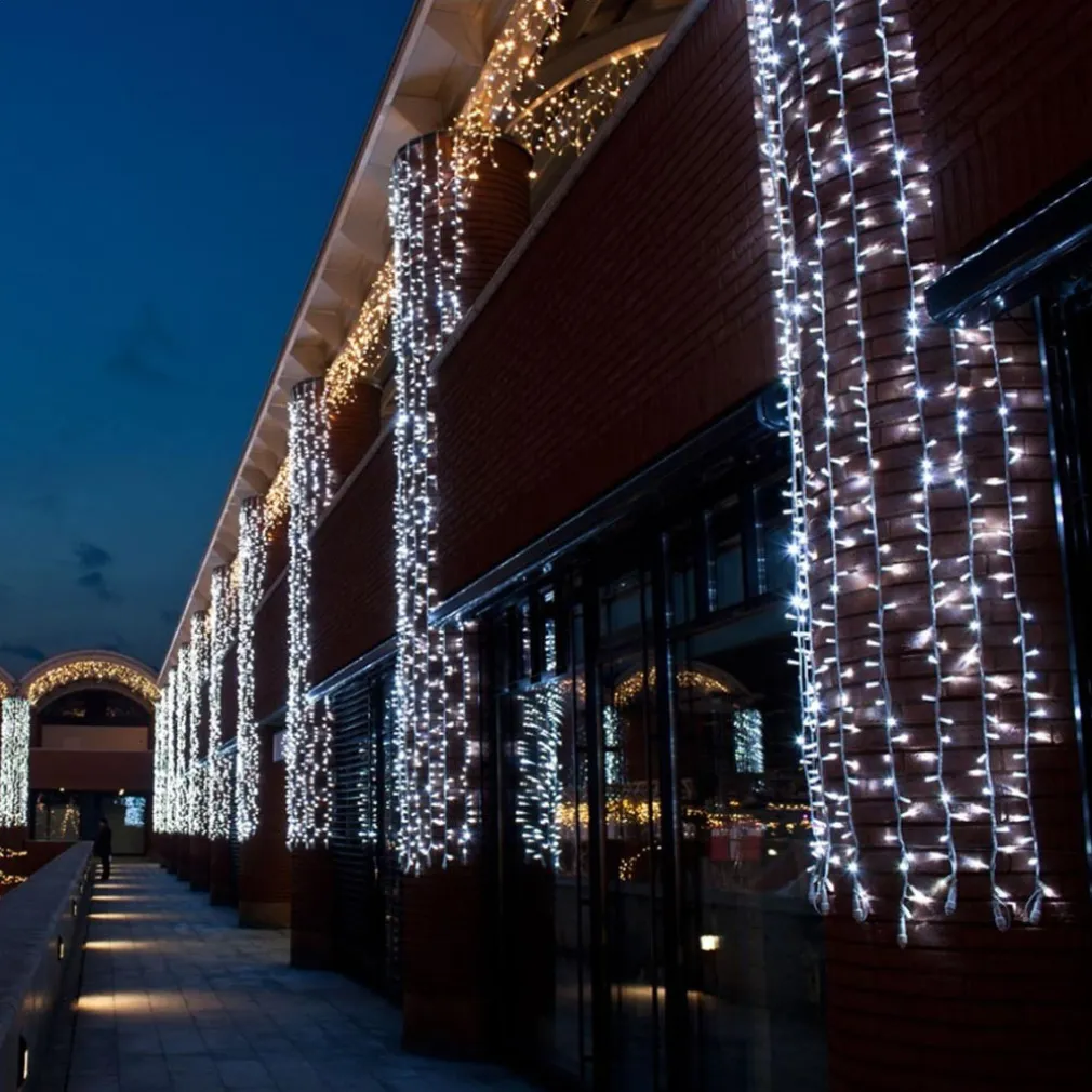 Per avere tutto ciò la luce è fondamentale e i LED rendono l’albero e gli ambienti interni ed esterni di casa tua stupendi… da lasciare tutti senza fiato. Questa nuovissima catena luminosa è dotata di ben 120 LED Bianco Freddo con flash che si sviluppano per una lunghezza di ben 9 metri ad intervalli di 7 cm l’uno daqll’altro, inoltre questa incredibile catena luminosa può essere prolungata fino ad un massimo di 270 metri (30 catene) garantendo così la lunghezza necessaria per decorare vaste aree o alberi di natale over size. Questa fantastica tenda luminosa è perfetta da utilizzare sia per gli interni che per gli Esterni di casa tua questo grazie al grado di Protezione IP44 che garantisce un eccellente impermeabilizzazione dall’acqua. Dotata infine di controller con 8 giochi di luce per un atmosfera natalizia ancora più suggestiva e stupefacente.