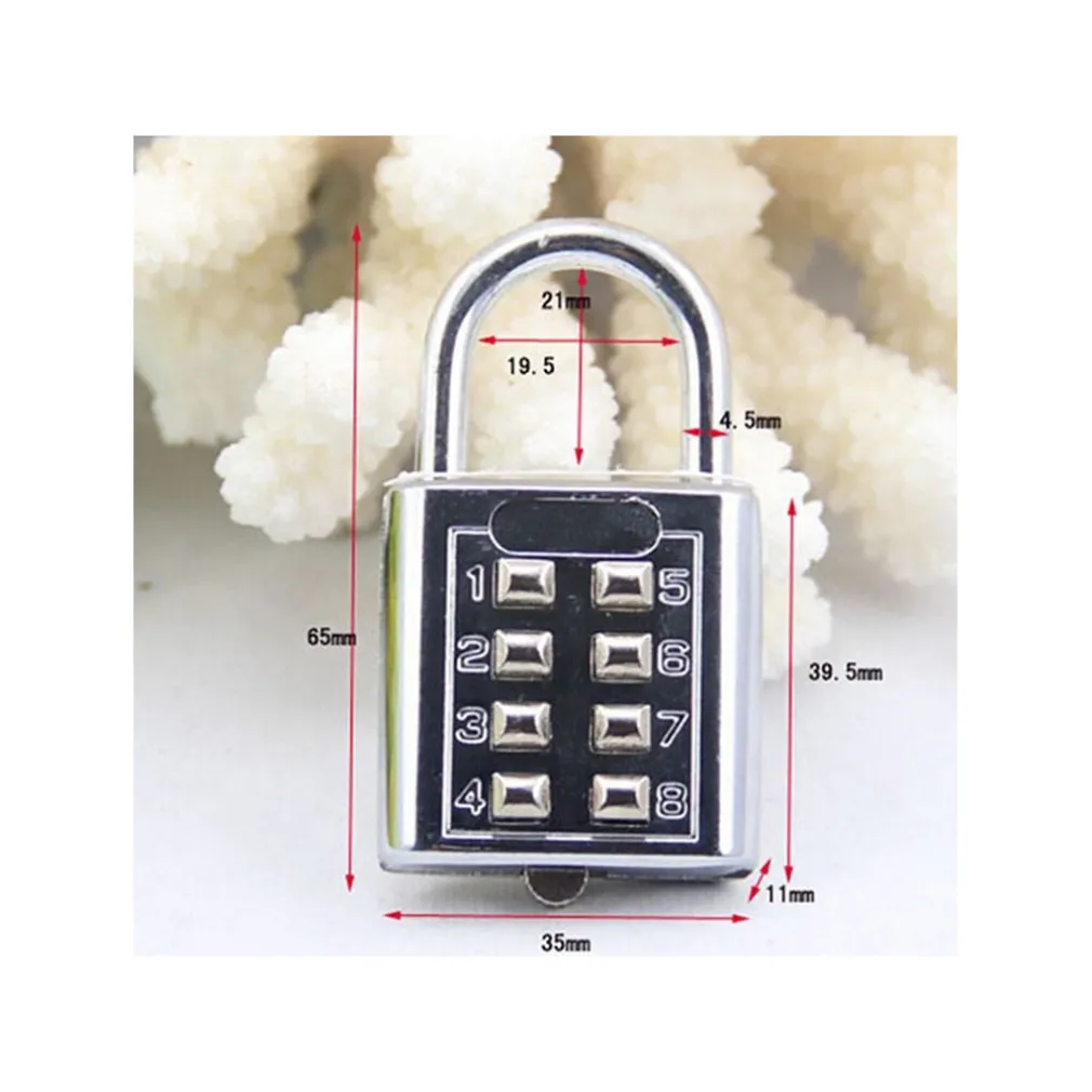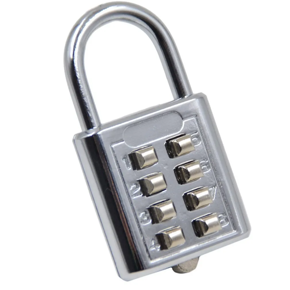 Lucchetto di sicurezza, in metallo, a 8 combinazioni (4 fisse). Ideali per tenere al sicuro i vostri oggetti personali, in palestra come a lavoro. Si adattano facilmente alle catene per biciclette e alle valigie. Utilissimo anche in campeggio. Grazie alla combinazione non correrete più il rischio di perdere le chiavi del vostro lucchetto!