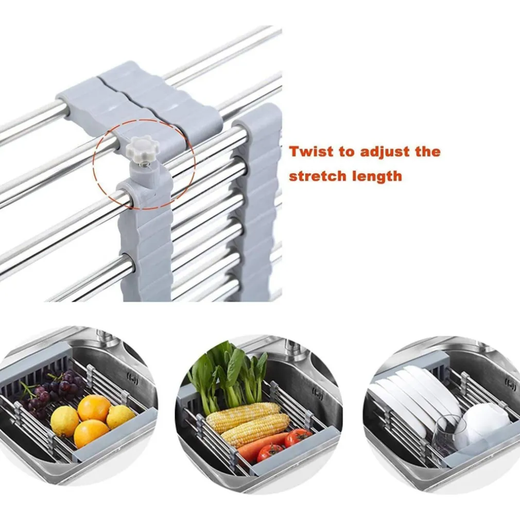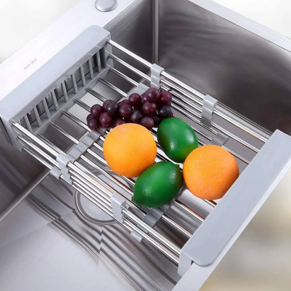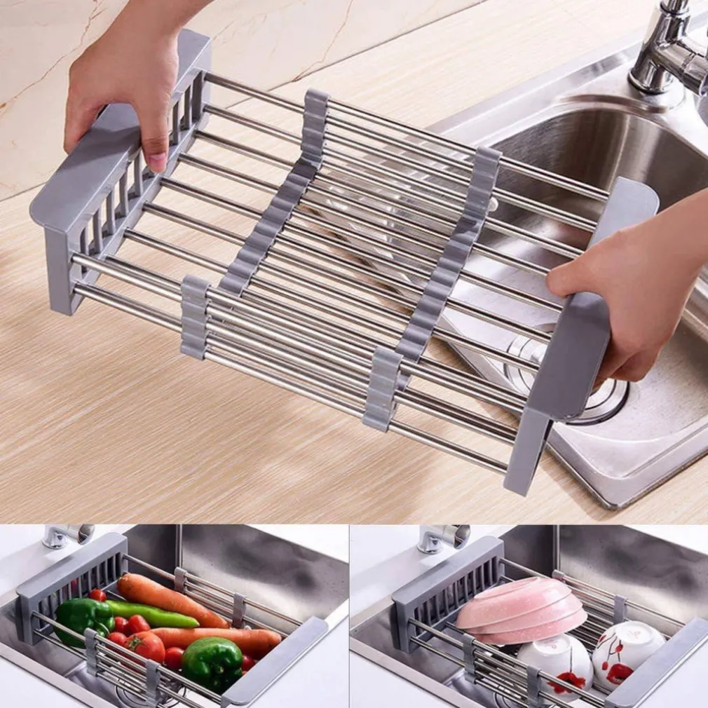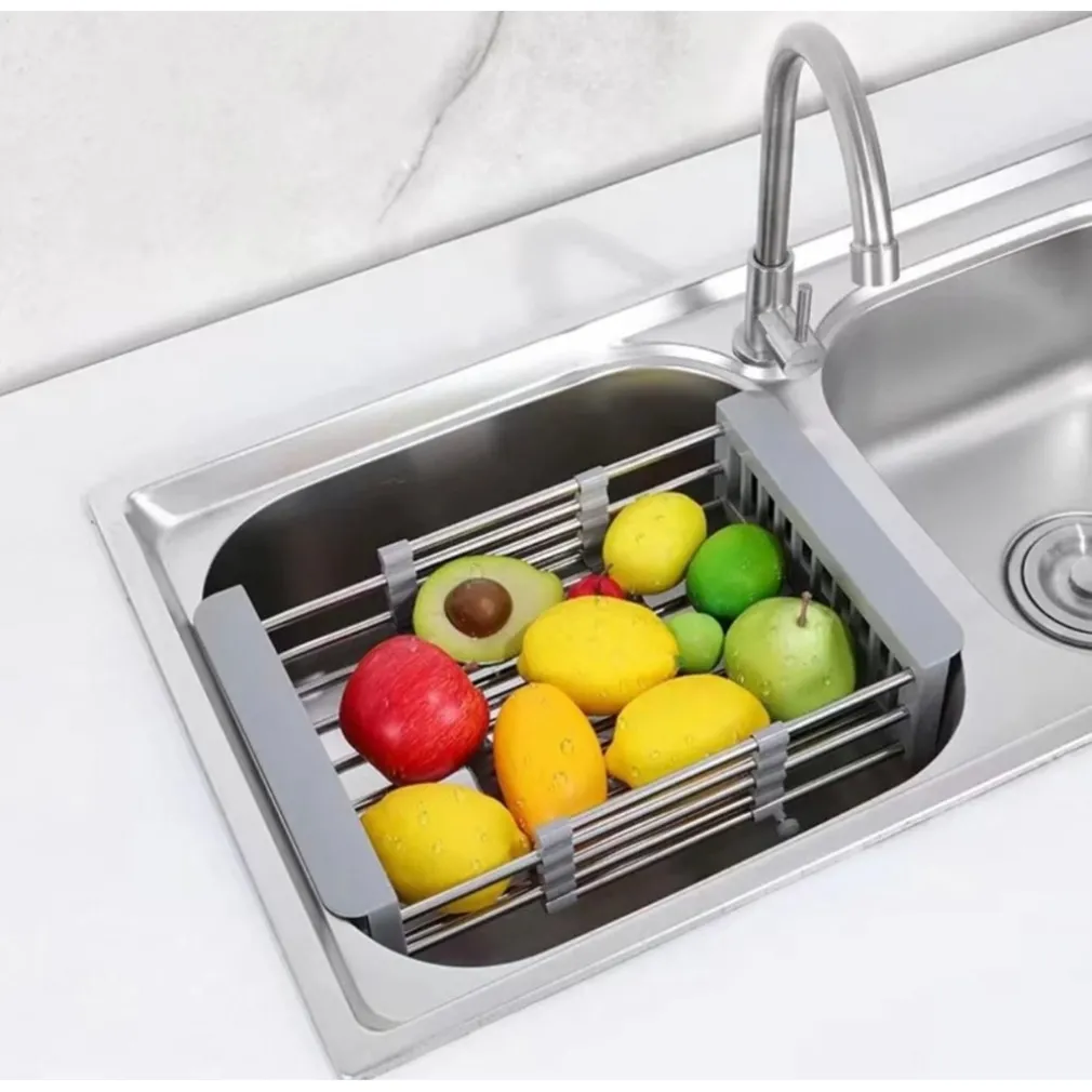 Lo scolapiatti espandibile è polivalente: sul bancone, nel lavandino o sopra il lavandino scolapiatti cestello di essiccazione, ottimo per frutta vegetale e piatti.