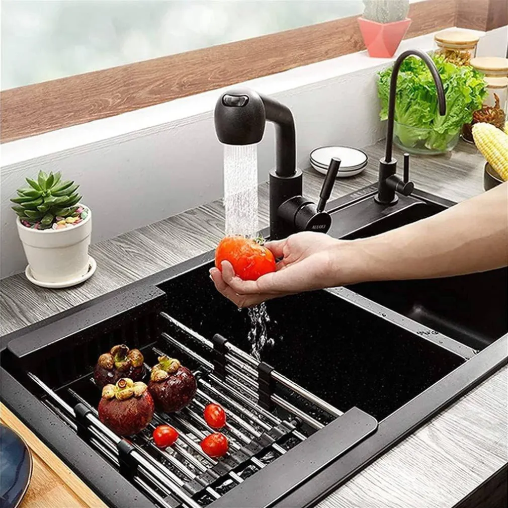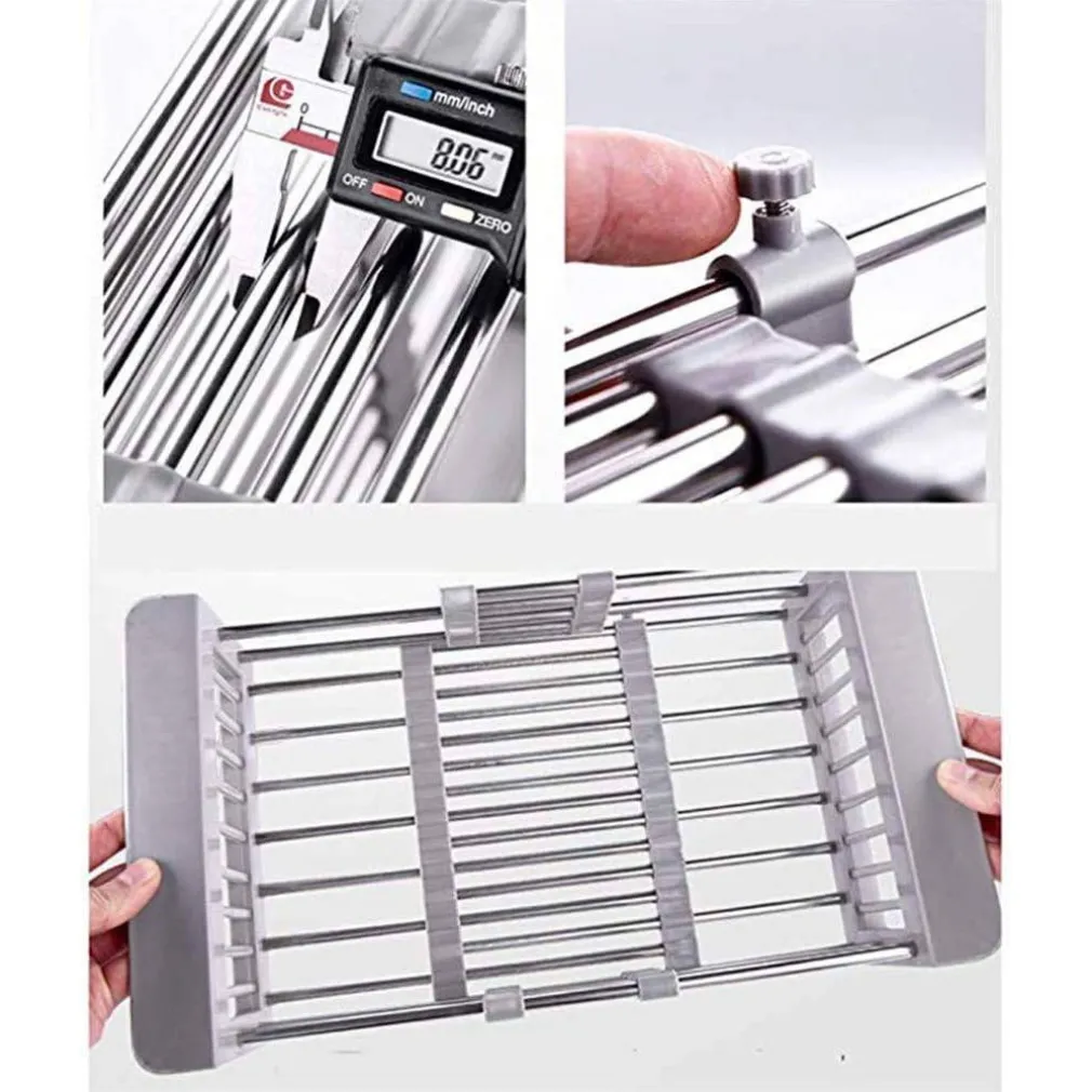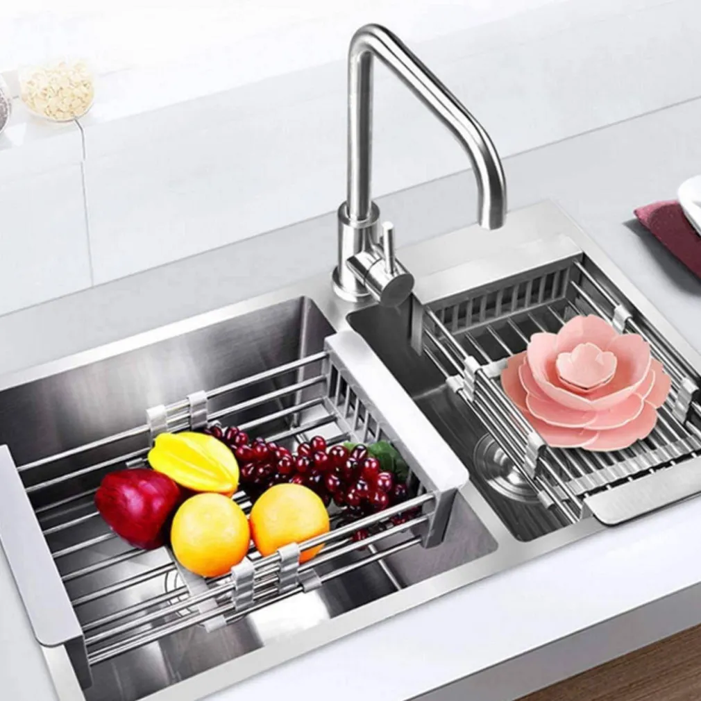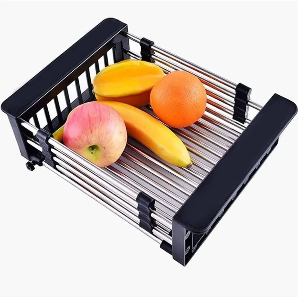 Lo scolapiatti espandibile è polivalente: sul bancone, nel lavandino o sopra il lavandino scolapiatti cestello di essiccazione, ottimo per frutta vegetale e piatti.