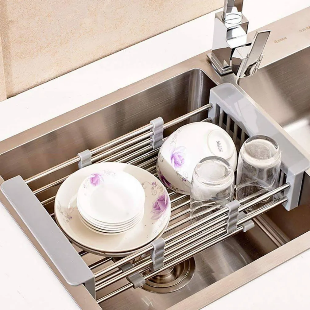 Scolapiatti regolabile per lavello si adatta a diverse dimensioni di lavelli.