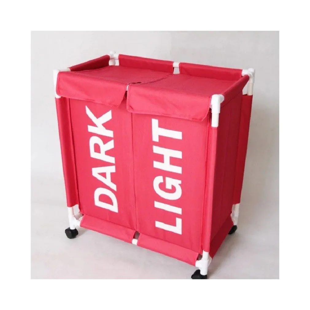 Cesto Contenitore Porta Biancheria Bucato 2 Scomparti Rotelle Panni Bagno