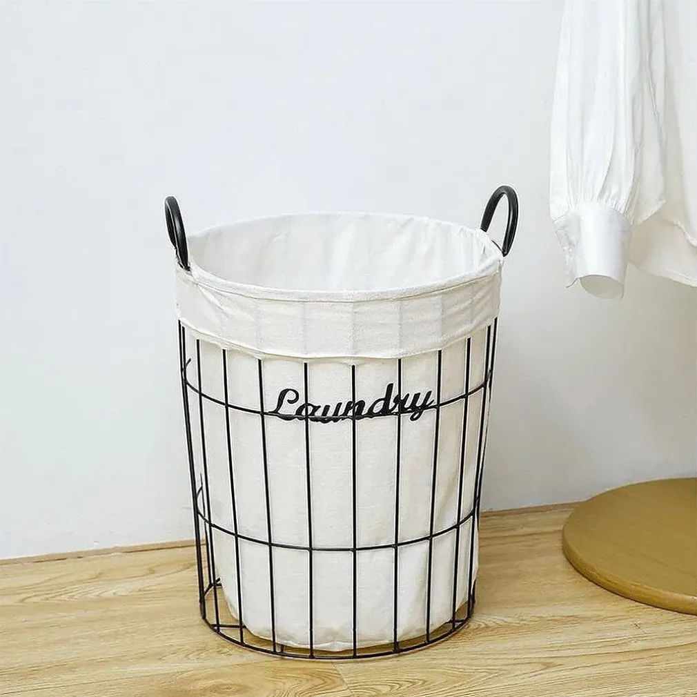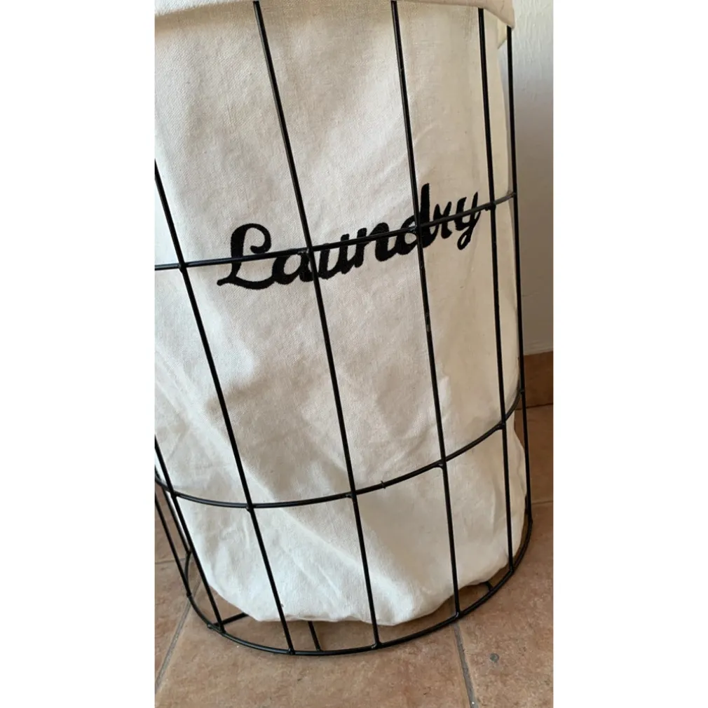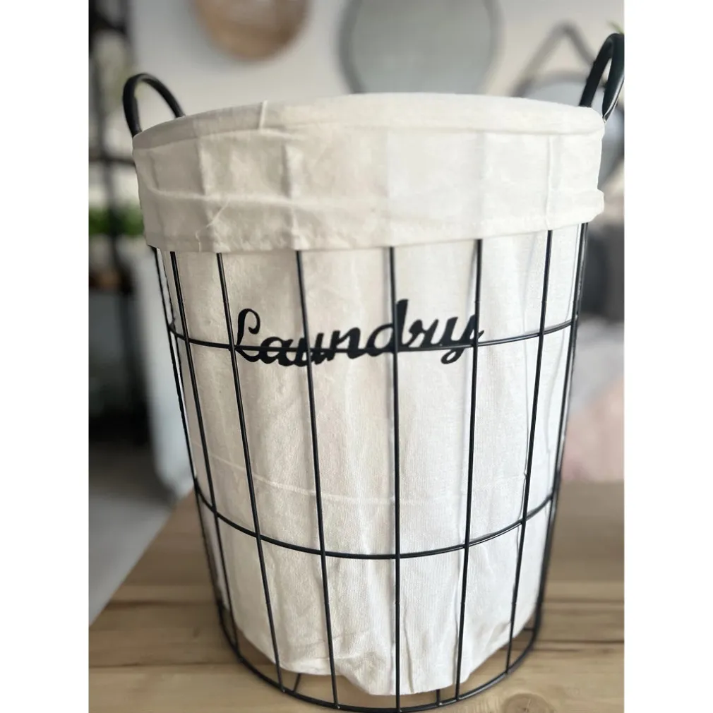 Il cesto presenta una struttura in metallo robusta, un tessuto sfoderabile e lavabile, e maniglie per un facile trasporto. È progettato per offrire una combinazione di praticità e stile.