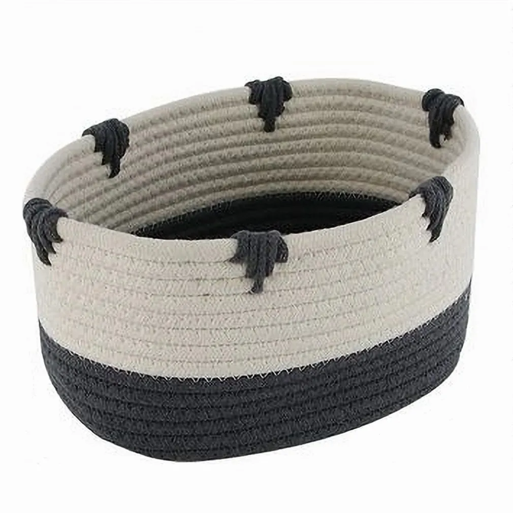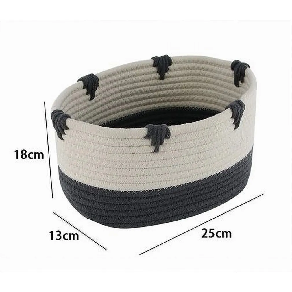 Il cesto è realizzato in tessuto intrecciato naturale di alta qualità, resistente e facile da pulire. Il design bicolore con dettagli in grigio lo rende unico nel suo genere.