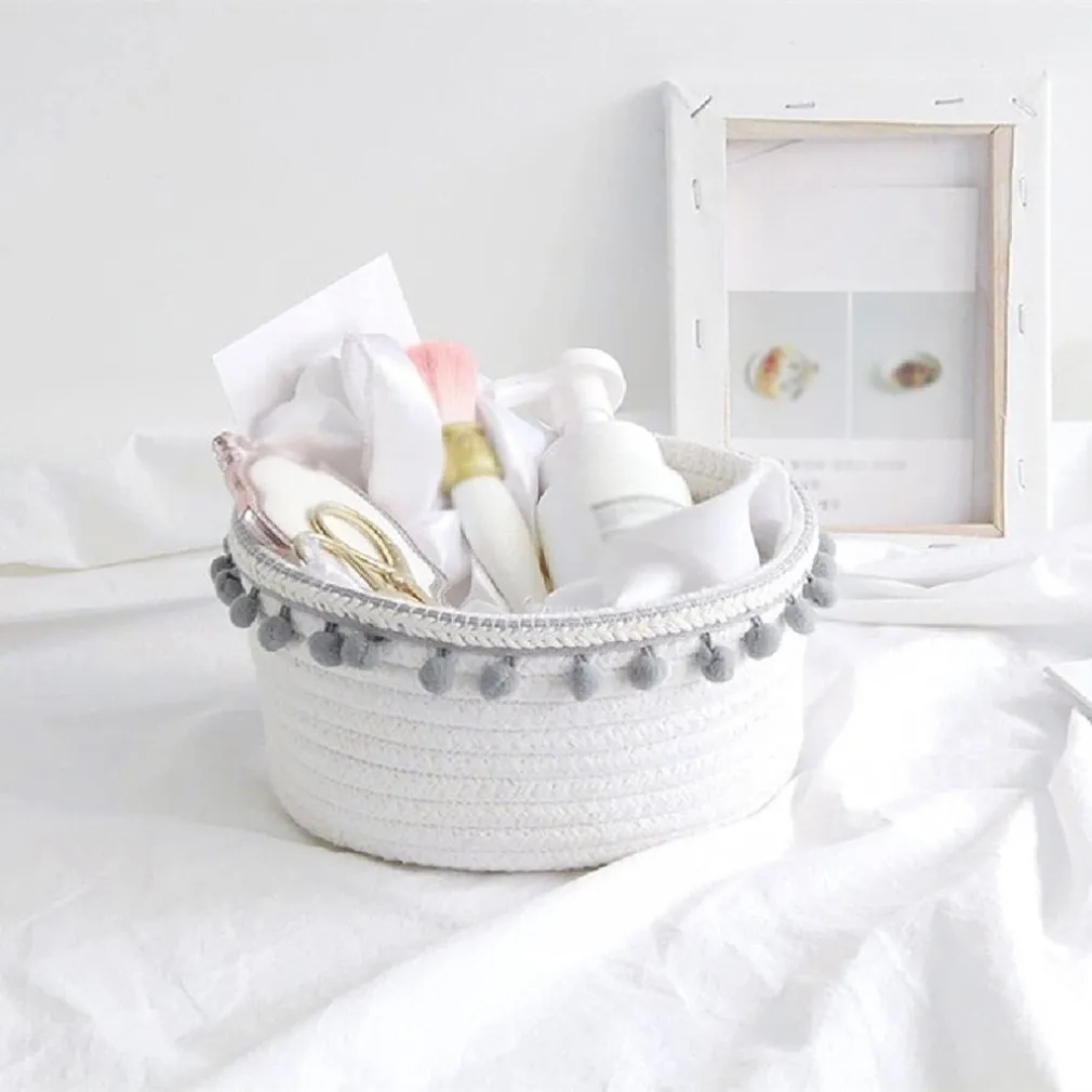 Non lasciarti sfuggire l’occasione di aggiungere un tocco di stile e funzionalità alla tua casa. Scopri subito il cesto porta oggetti per biancheria in corda con pon pon grigi e inizia a organizzare i tuoi spazi con classe!