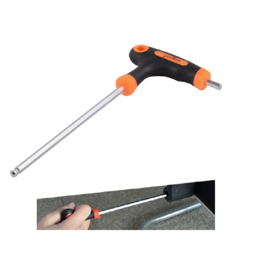 Chiave con impugnatura di manovra. Realizzate in acciaio cromo vanadio queste brugole sono perfette anche per i professionisti che necessitano di una qualità elevata. L’accurato proporzionamento dell’impugnatura ergonomica, in funzione della dimensione della chiave, garantisce serraggi elevati anche in spazi ristretti. Chiavi a T con punta sferica e impugnatura ergonomica. L’estremità sferica consente di operare con un’inclinazione fino a 30° rispetto all’asse della vite.