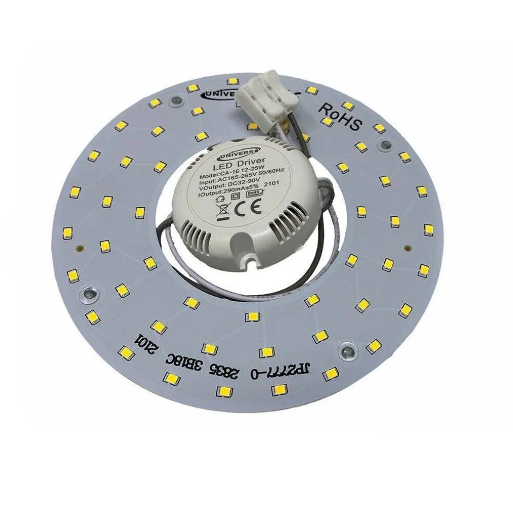 Modulo led circolare ideale per modificare le tradizionali plafoniere a neon. Facile da installare, basta eliminare il vecchio neon insieme a starter e reattore ed inserire il modulo che si fissa perfettamente alla base di alluminio della plafoniera mediante dei supporti calamitati, il driver dispone del biadesivo sul retro.