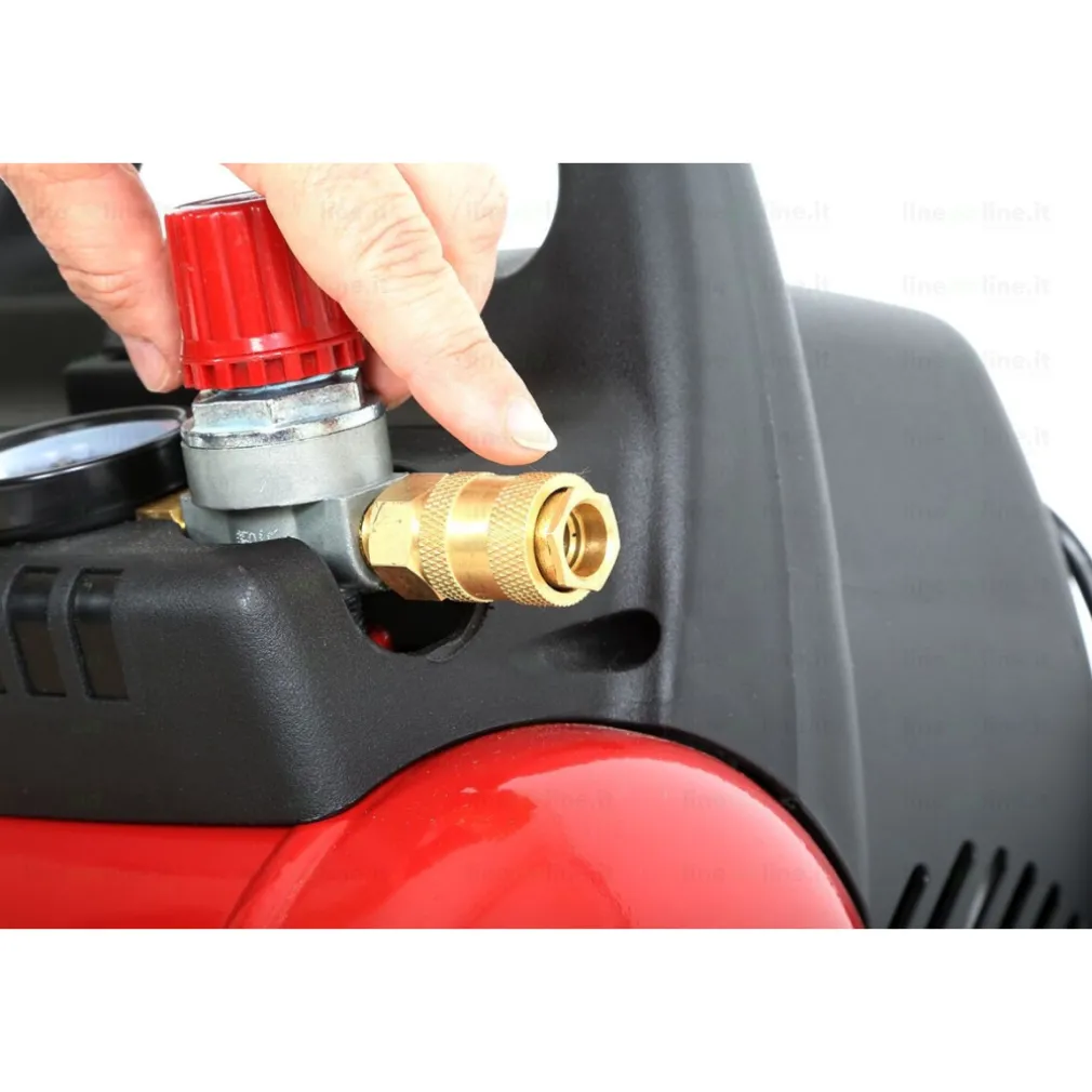 Il compressore Einhell TH-AC 190/6 OF è una delle novità 2016 con cui l’azienda vuole soddisfare le esigenze di coloro che hanno bisogno di soffiare, gonfiare, chiodare, sverniciare in ambito domestico e del “fai da te”. Compatto, piccolo, maneggevole il TH-AC 190/6 OF rappresenta lo strumento ideale per chi ha bisogno di spostarsi e portare il compressore in luoghi e situazioni diverse dalla propria casa. Questo modello ha la trasmissione diretta coassiale che riduce le dispersioni di potenza, non ha la lubrificazione ad olio, annullando in pratica le spese di manutenzione periodica e il motore da 1,5 Hp sviluppa 3.550 al minuto. Il peso modesto di 9,20 kg consente di trasportarlo in sicurezza e praticità ovunque anche grazie all’impugnatura ergonomica incorporata col resto della carenatura dal design compatto e innovativo. I comandi e gli accessori di cui è dotato sono: