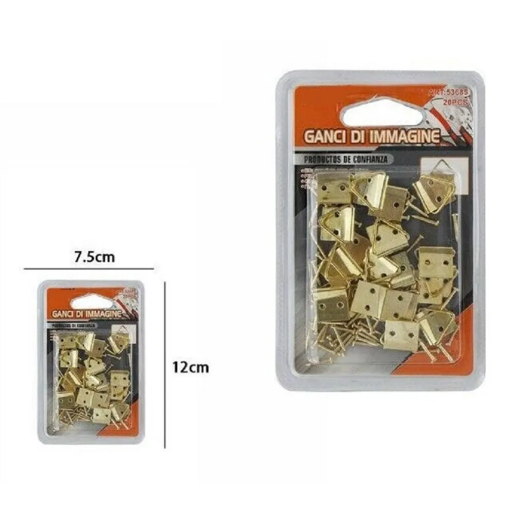 Confezione 20 Pezzi Ganci Gancetti Dorati per Quadri – Appendere con Eleganza alla Parete