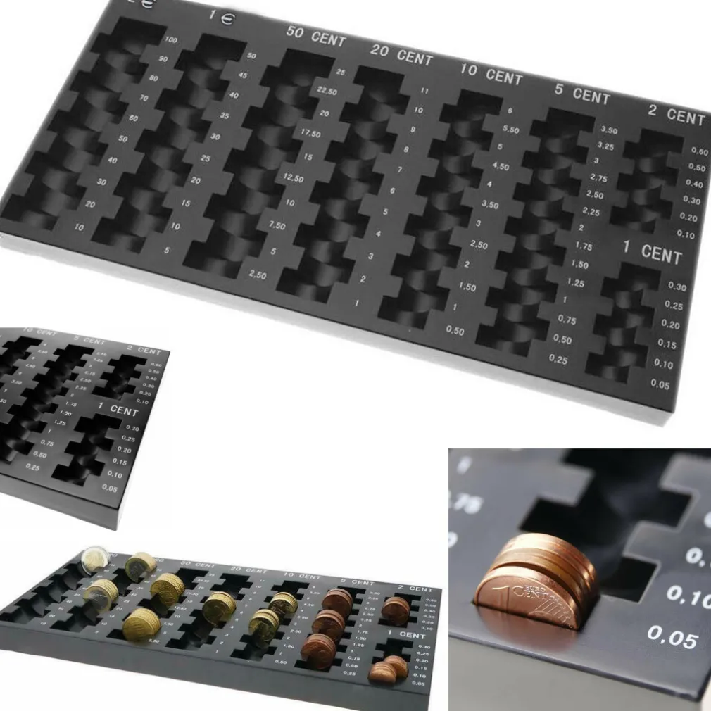Design a 8 Colonne Numerate: Il contamonete presenta un vassoio con 8 colonne numerate, consentendoti di organizzare facilmente le diverse denominazioni di euro. Questa funzionalità è particolarmente utile per il conteggio rapido e accurato di grandi quantità di monete.