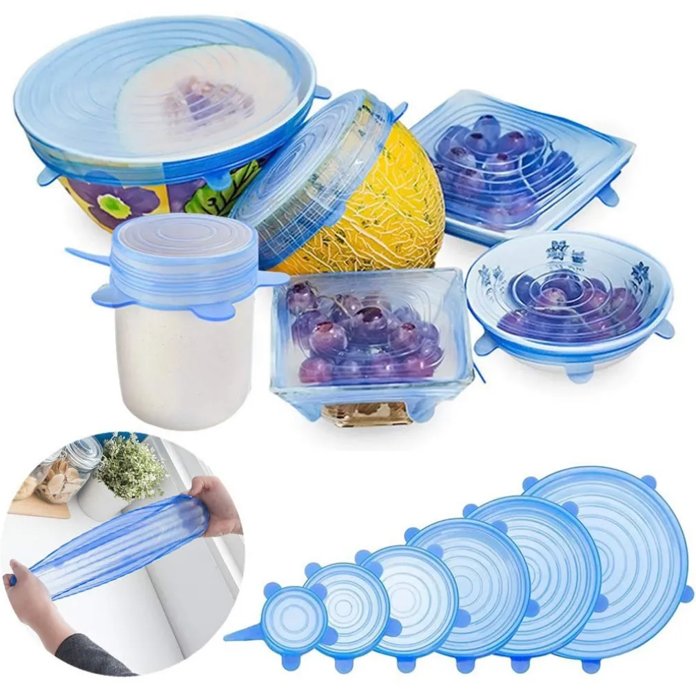 Realizzati con silicone alimentare di alta qualità, questi coperchi sono caratterizzati da una notevole flessibilità, resistenza e elasticità. Garantiscono una sigillatura ermetica impeccabile, eliminando la necessità di pellicola trasparente o coperture tradizionali in plastica. Questa soluzione non solo risparmia tempo, ma contribuisce anche a ridurre gli sprechi alimentari.