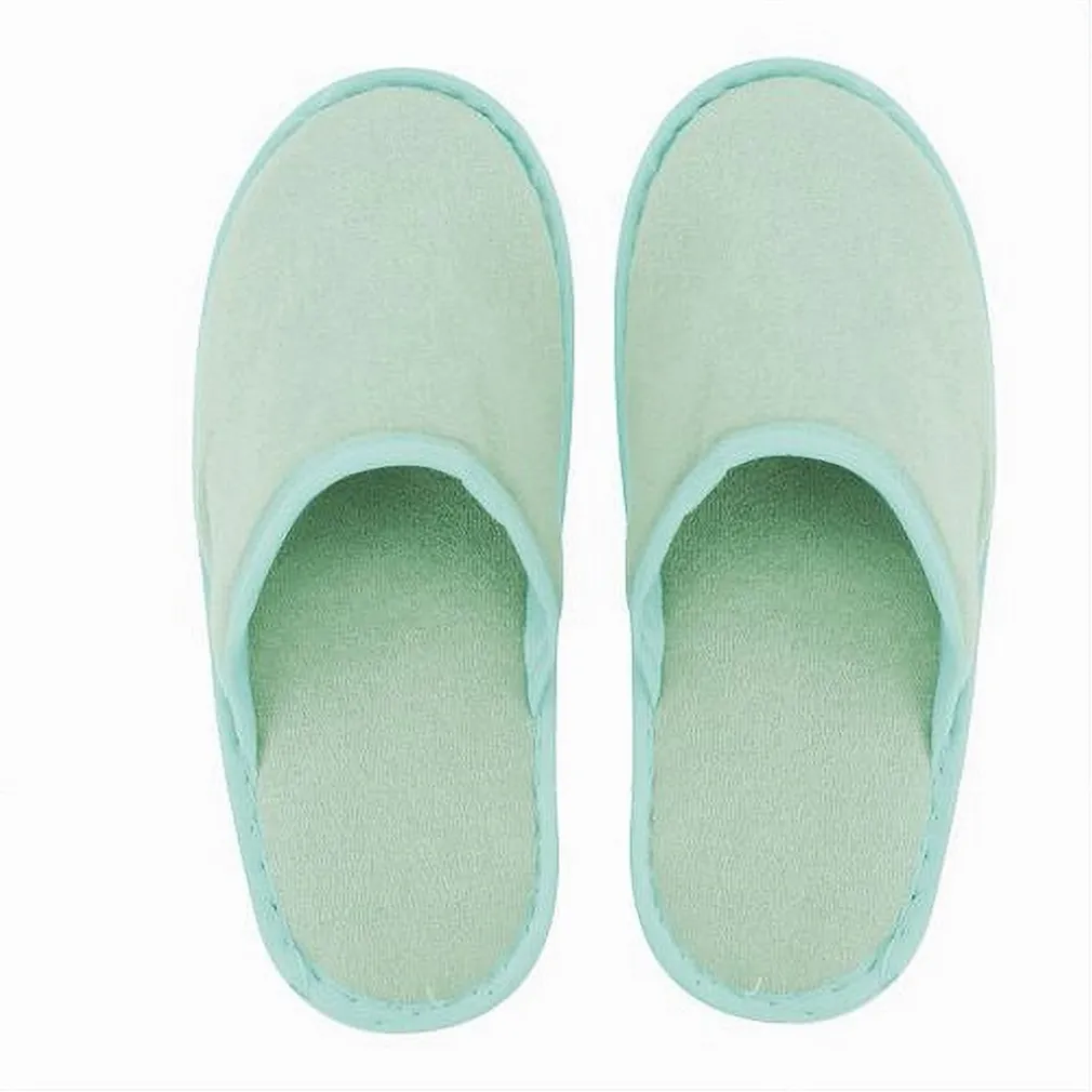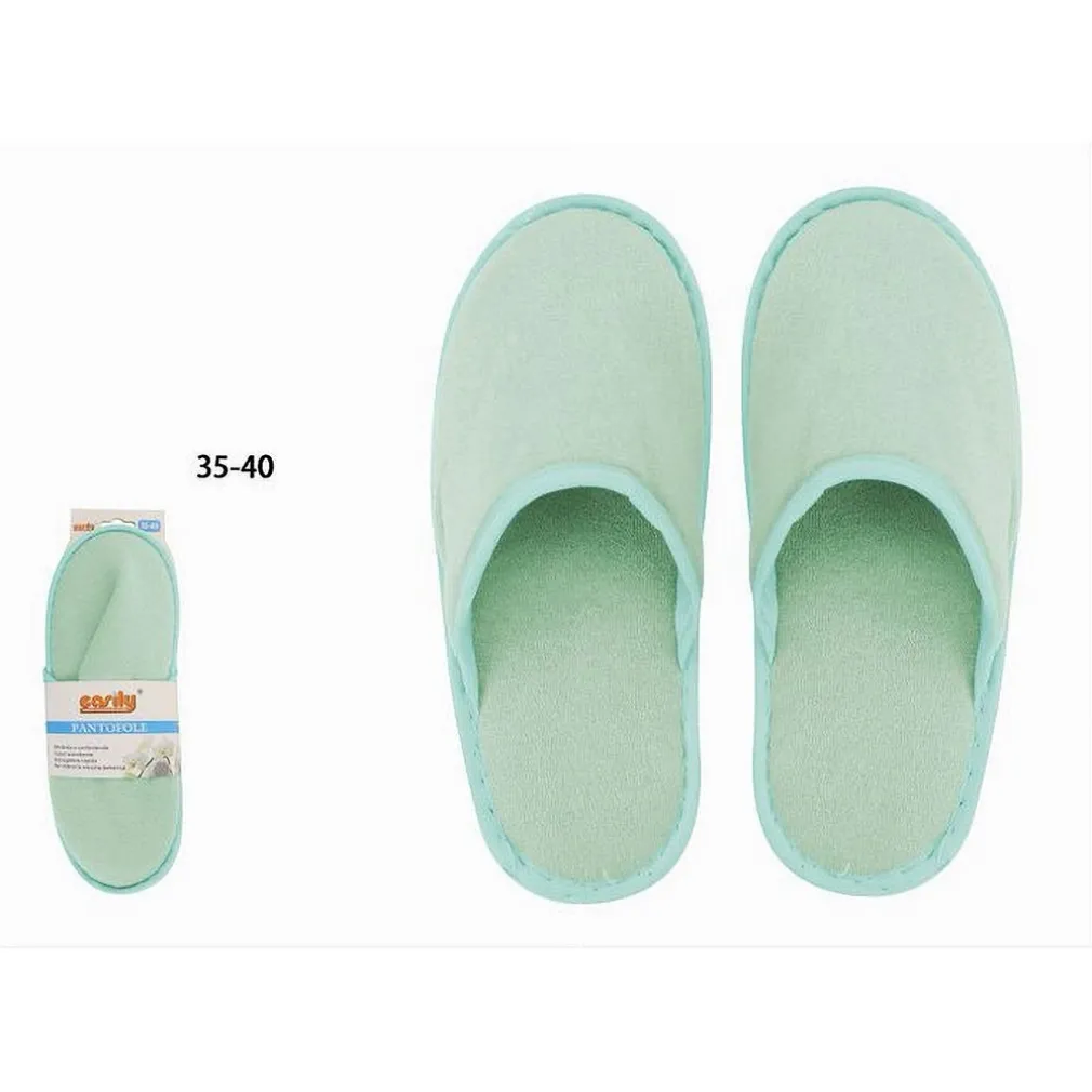 Coppia Pantofole Ciabatte Bagno Chiuse Tessuto Verde Taglia 35-40 Stanza Albergo Hotel (79686)