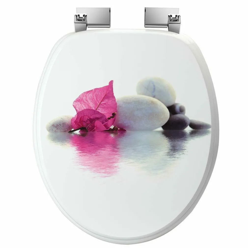 - 1 x Copriwater Universale con Stampa Pietre Foglia Copri Tavoletta WC Bagno Legno