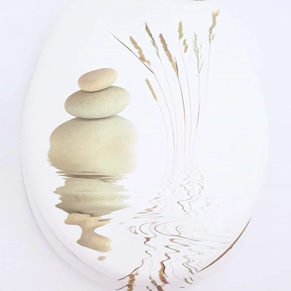 - Copriwater Universale Legno Pietra Sassi Bianchi