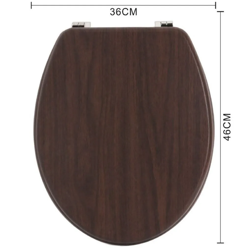 Materiale di Qualità: Realizzato in MDF stampato, questo copriwater è progettato per resistere nel tempo. La sua superficie liscia e il colore marrone legno scuro si abbinano perfettamente a vari stili di arredo bagno, aggiungendo un tocco di eleganza e raffinatezza.