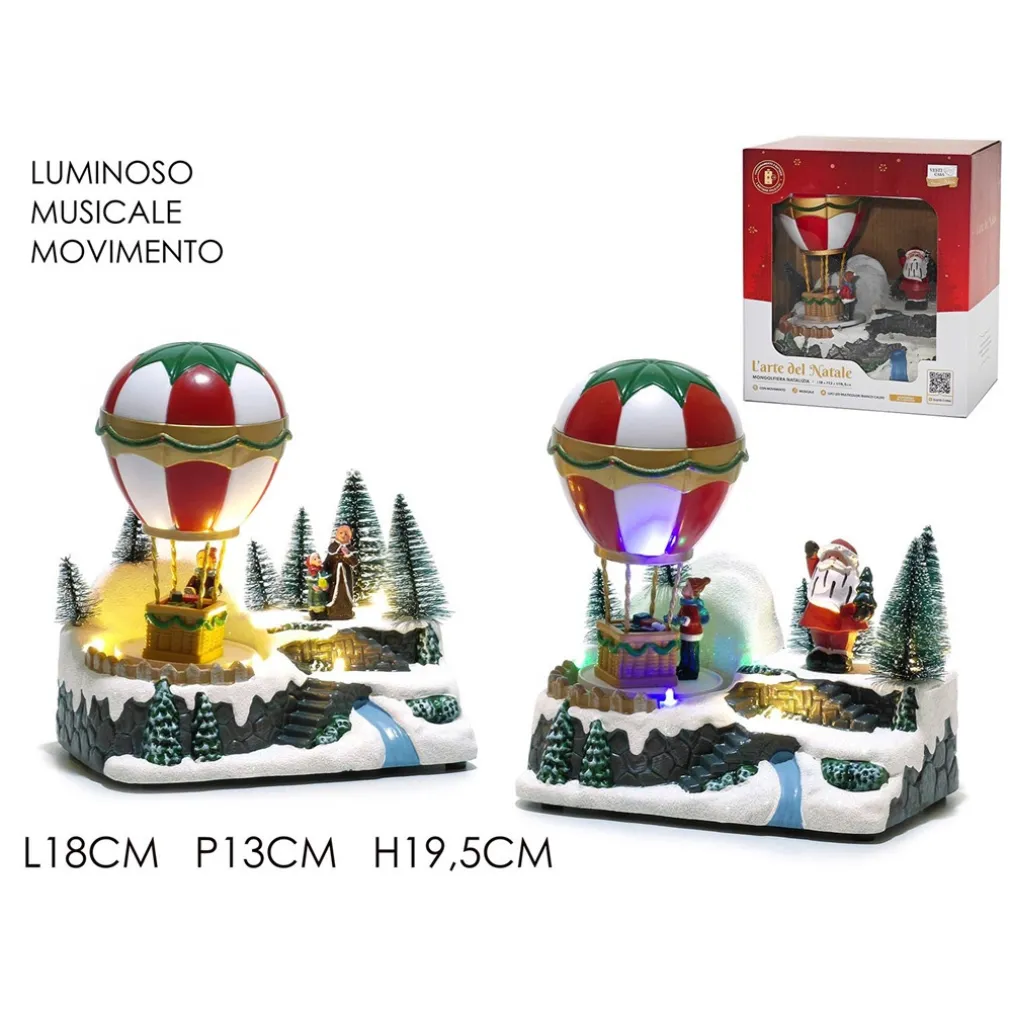 Decorazione Mongolfiera Natalizia Neve Luci Musica con Movimento 18x13x19.5cm – 2 Modelli