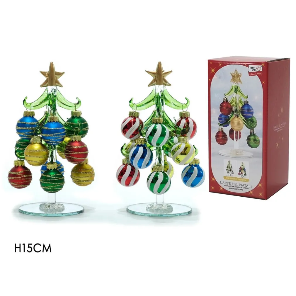 DECORAZIONE NATALIZIA ALBERO DI NATALE 15CM IN VETRO CON PALLINE