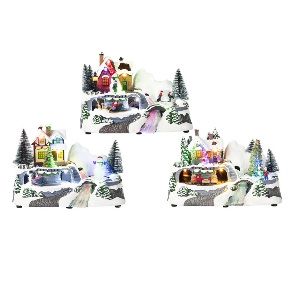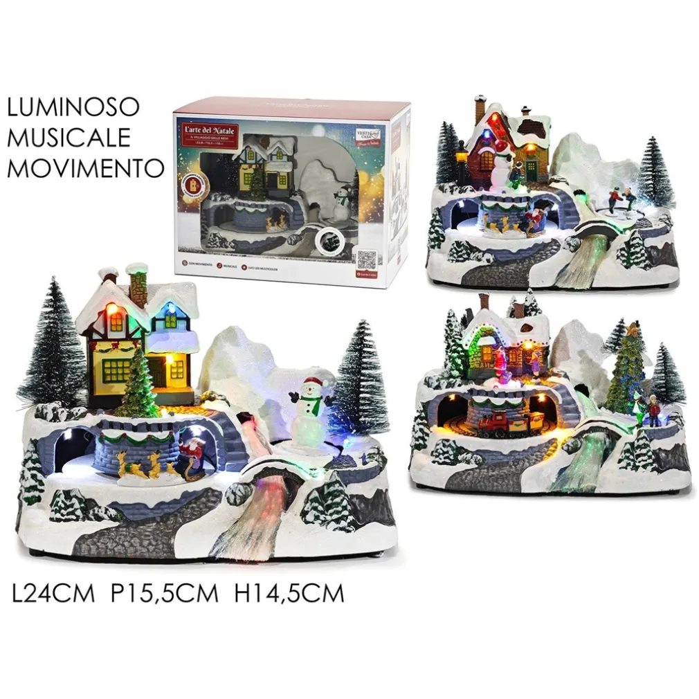 DECORAZIONE NATALIZIA SCENE VILLAGGIO DI NATALE CON LUCI LED MULTICOLOR MUSICA MOVIMENTO