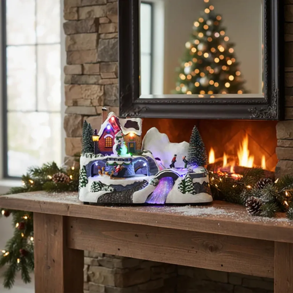 Questa decorazione natalizia unica combina luci LED multicolor, musica festiva e movimento realistico in un’unica scenetta che cattura immediatamente lo sguardo. Ogni dettaglio è curato con attenzione, dalle casette innevate agli alberi illuminati, fino ai personaggi che si muovono in perfetta armonia con le melodie natalizie.